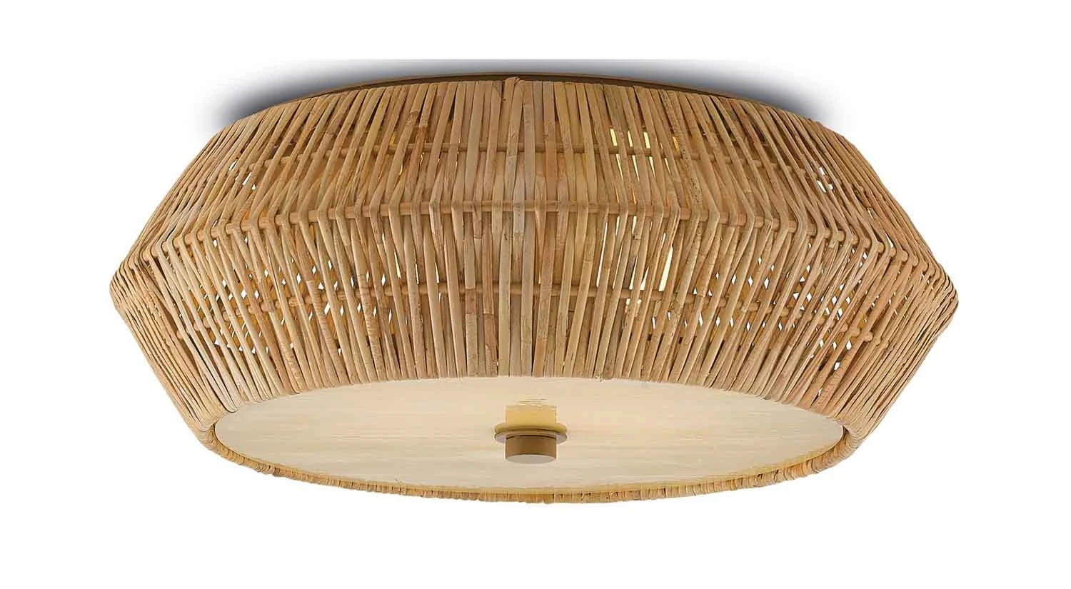 The Antibes Flush Mount is stylish while remaining true to its natural feel. Its geometric design is woven from rattan, showcasing quality artistry and construction, while a honey beige finish brings warmth to the home.