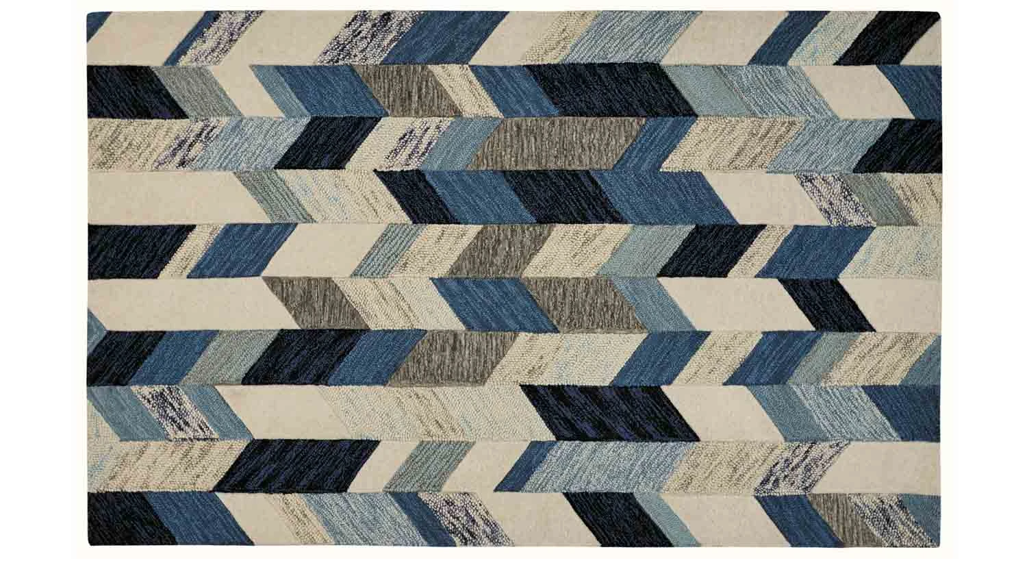 The Arazad Collection uses color, geometric shapes, and thoughtful designs to bring a new kind of energy to your home. Its blue ivory rug has a contemporary look complemented by a distinct pattern and calming color palette.