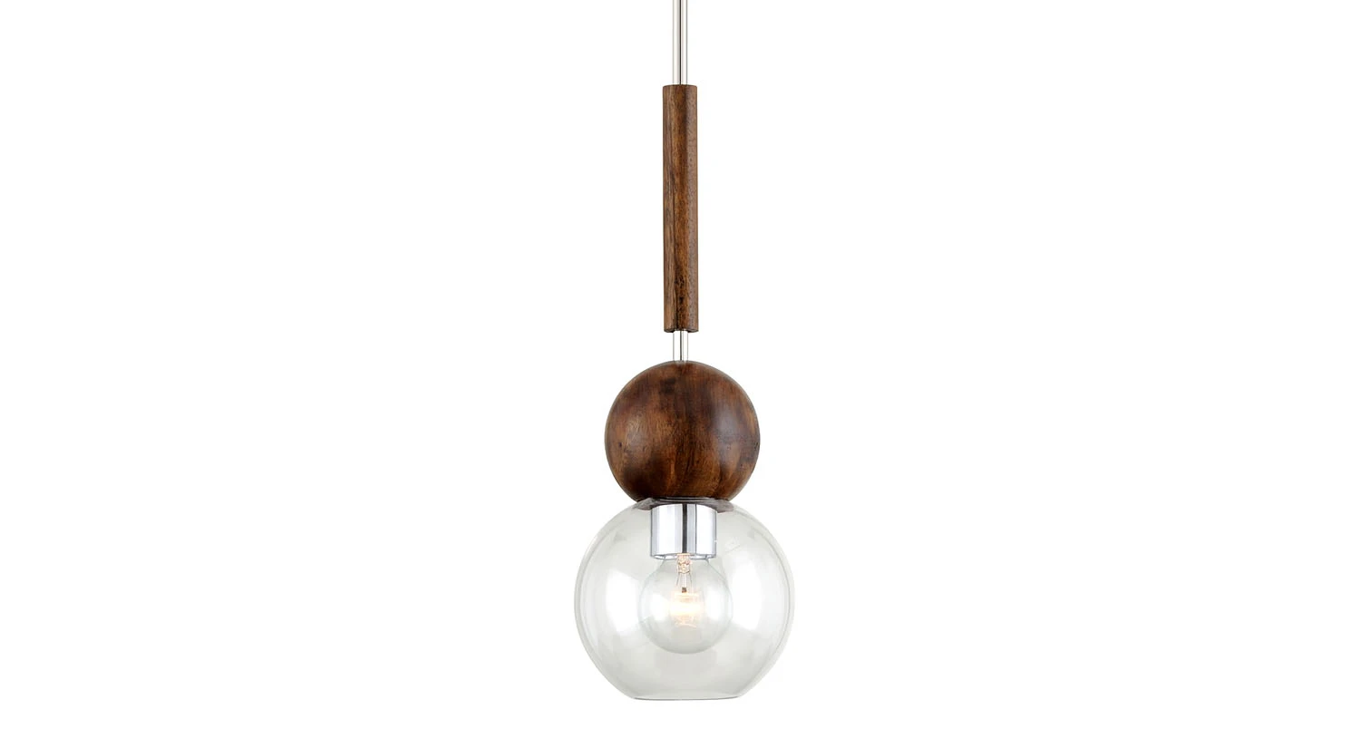 The Arlo Mini Pendant is distinguished by a tasteful blend of contrasting materials to create a mid-century modern style. It features one light covered by an orb-like shade, hanging effortlessly in the home while providing a beautiful glow.