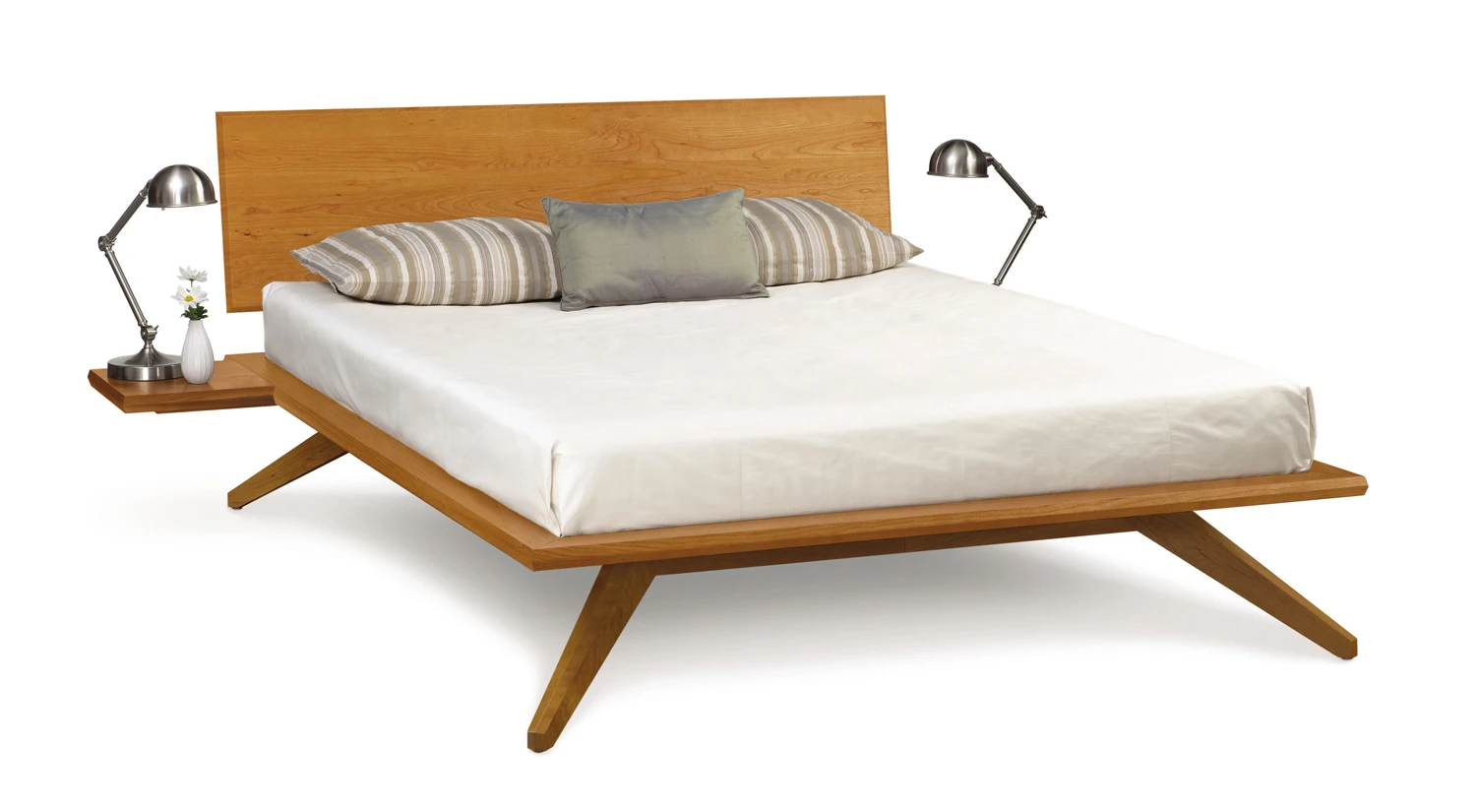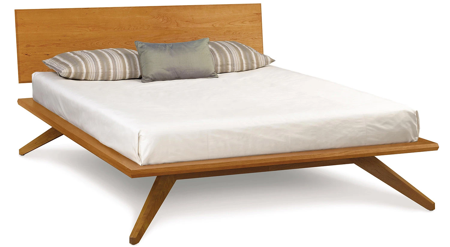 The Astrid from Copeland is supported by four low-angle legs, which create a dramatic look and make it a true platform bed. Crafted from solid hardwood, it features an adjustable headrest. Made for a mattress only.
