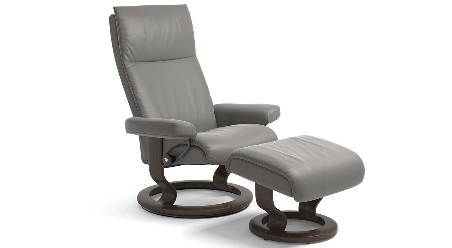 The Stressless Aura recliner is tall and slim but very comfortable. The recliner has a swivel feature and the patented Stressless Glide System, which ensures maximum support for the entire body.