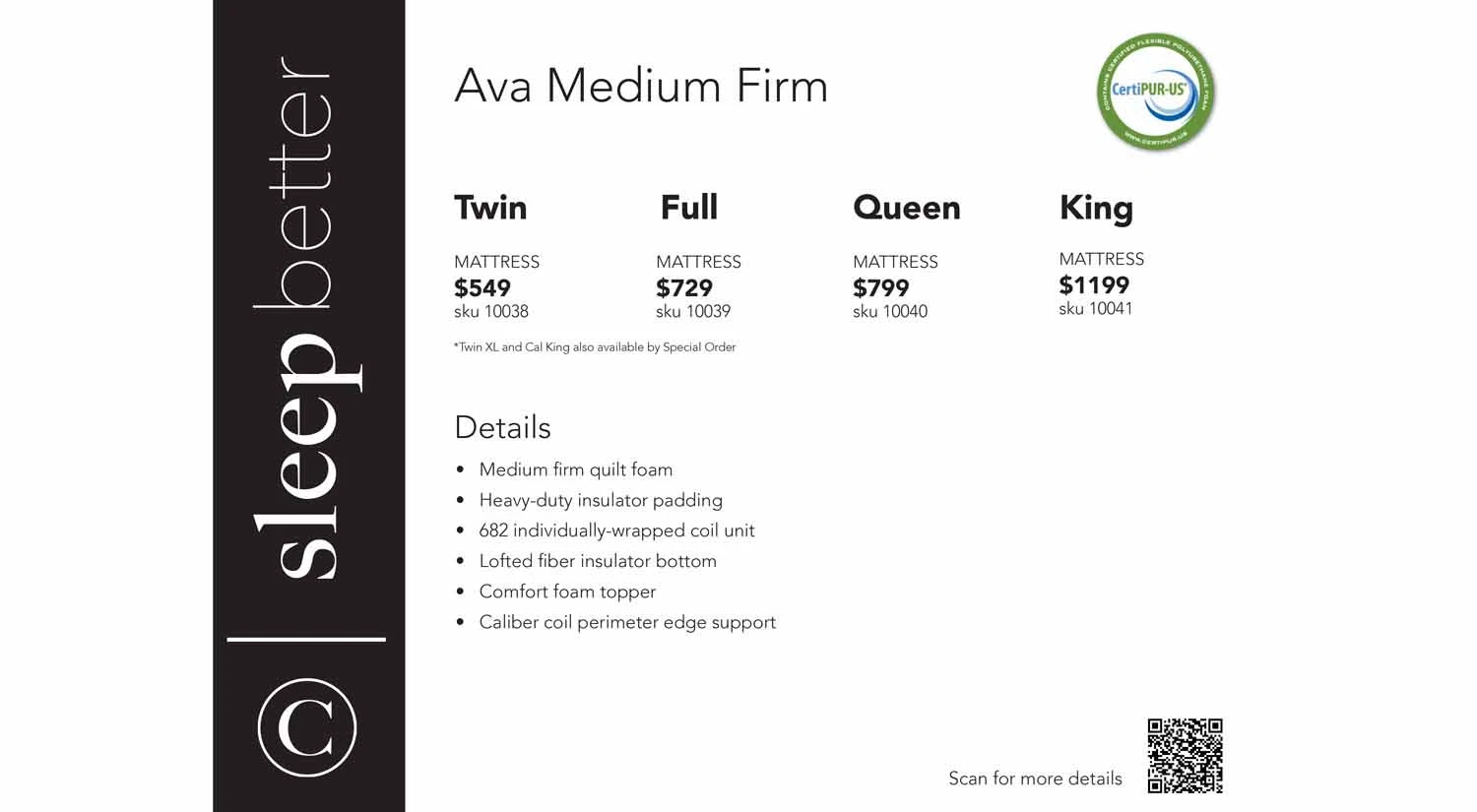 The Ava Medum Firm Mattress invites you to cuddle up for the night and enjoy quality sleep. This comfortable mattress supports you as you rest ensuring you wake up each morning feeling refreshed.