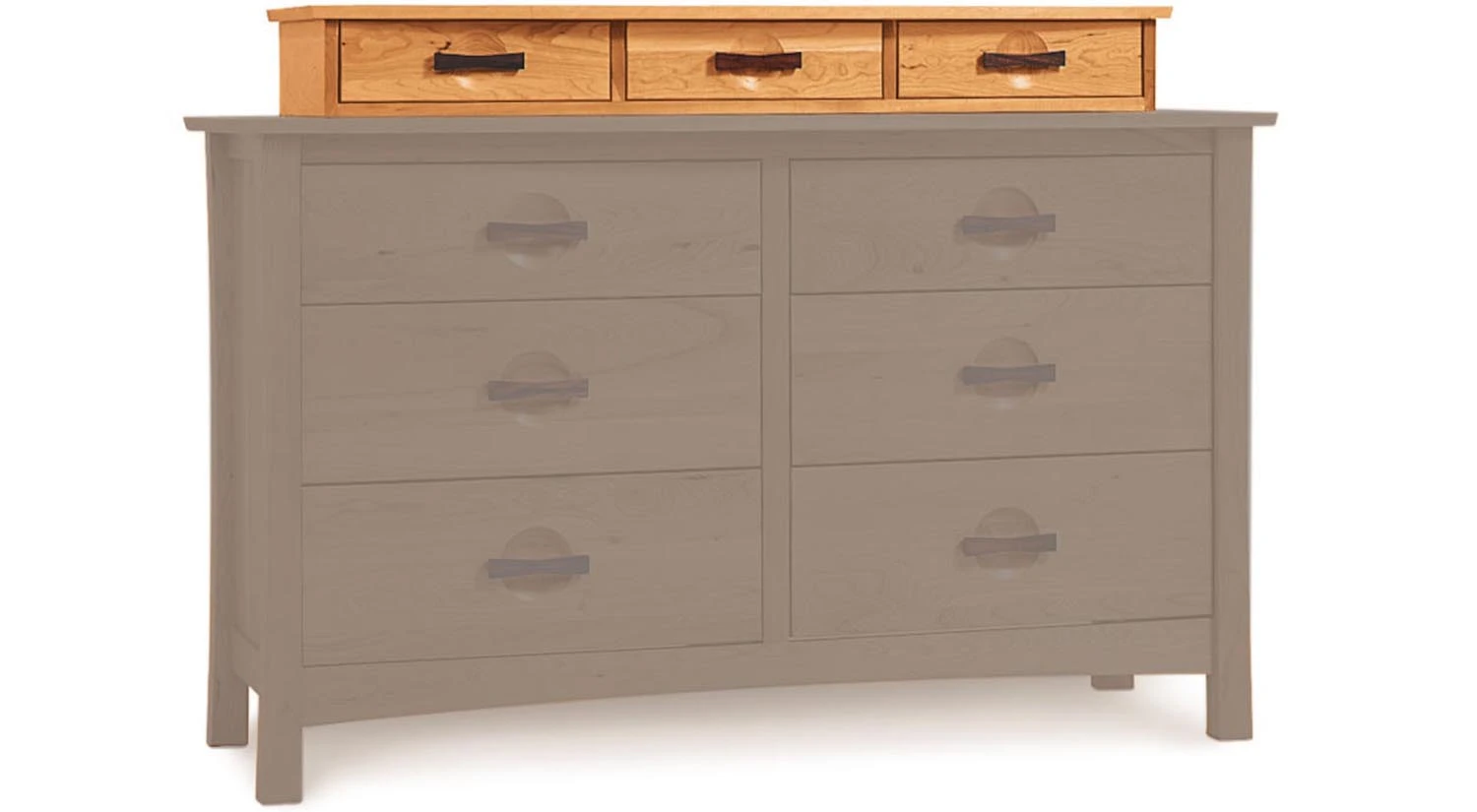 The Berkeley 6 Drawer Dresser w/ Accessory Case is made of solid cherry hardwood featuring black walnut accents, wood-on-wood drawer glides, and a 3 drawer accessory case on top. Distinct details complement the dresser’s sleek design, and it comes in a variety of GREENGUARD Certified finishes for low chemical emissions.