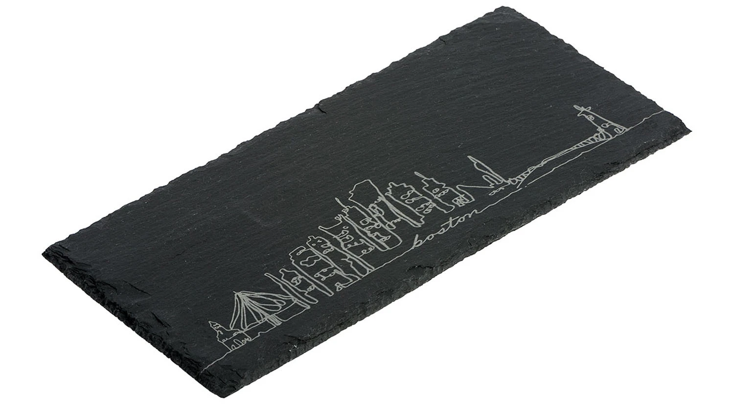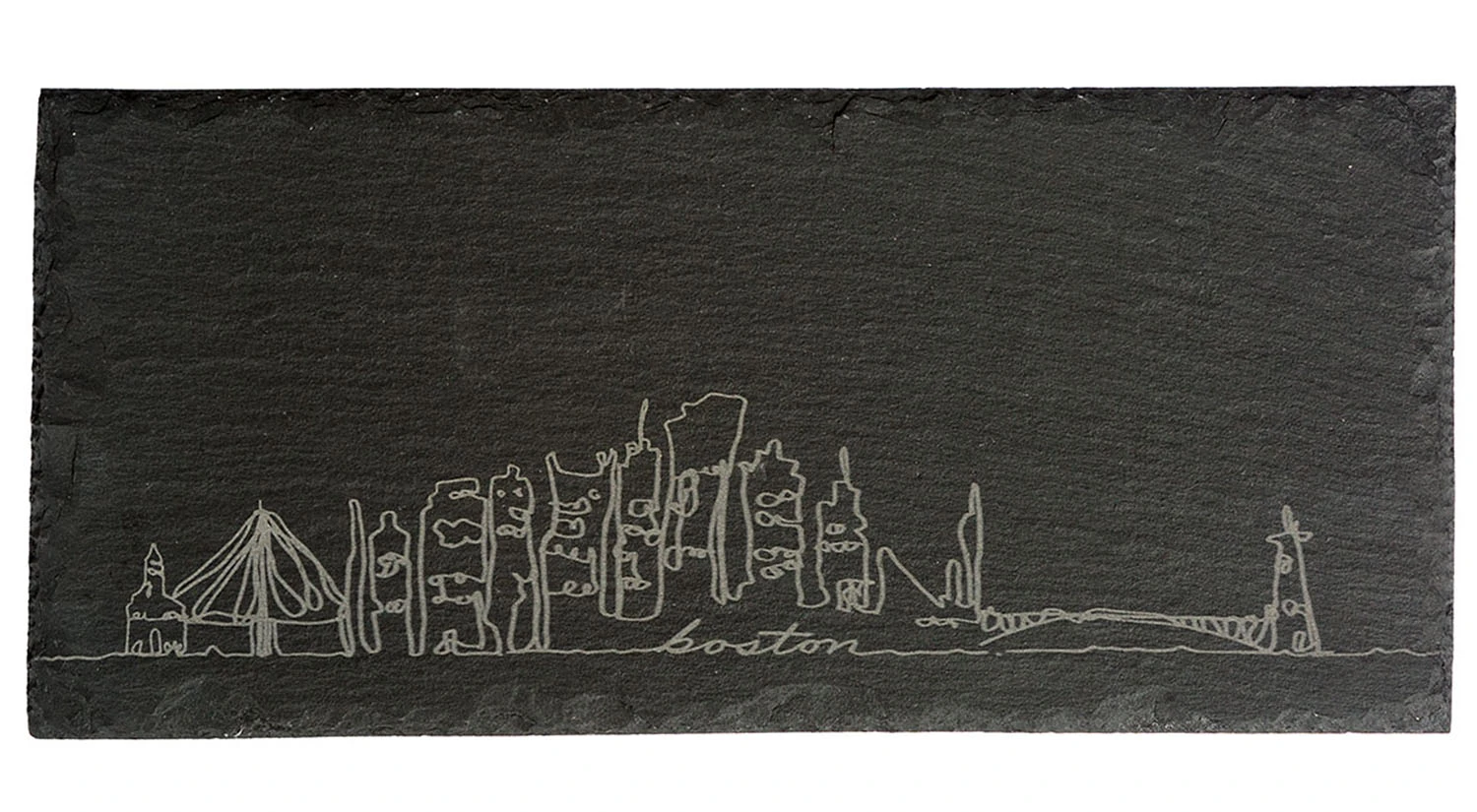 Engraved with the iconic Boston city skyline, our Cityscape Slate Serving Board is a unique way to serve cheeses or can be used as a trivet or candle-base. From Faneuil Hall to Zakim Bridge, this artist’s interpretation of the Boston skyline is sure to bolster hometown (or new town) pride.