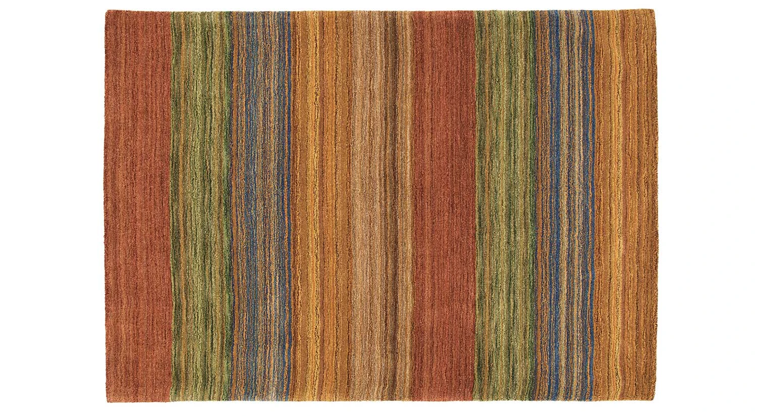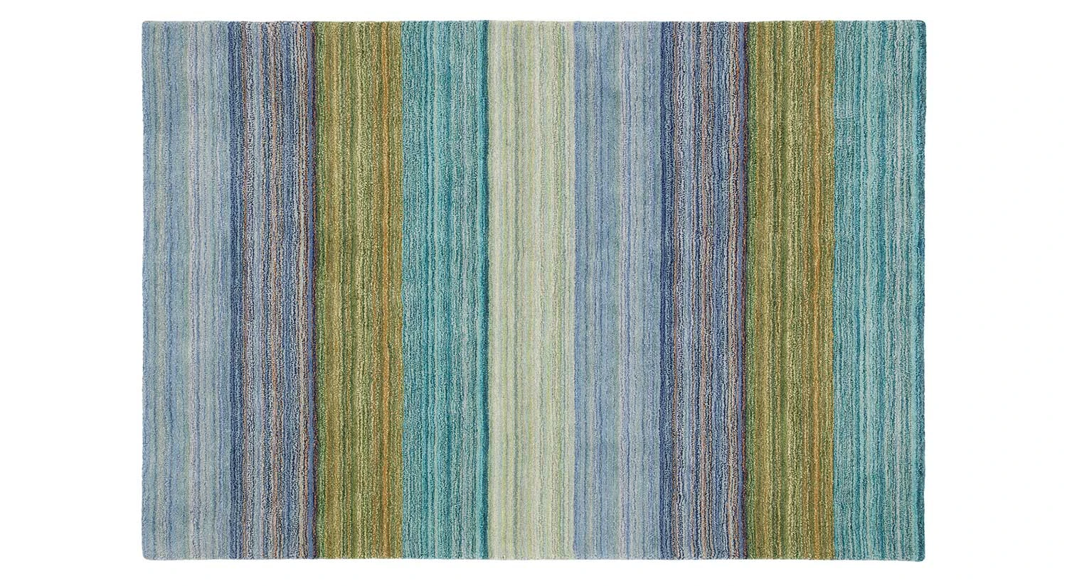 Stripes of color meld across this rug like paint-laden brushstrokes. With its rich melange of muted colors, this versatile rug can work in a wide range of settings. 100% wool, loomed.