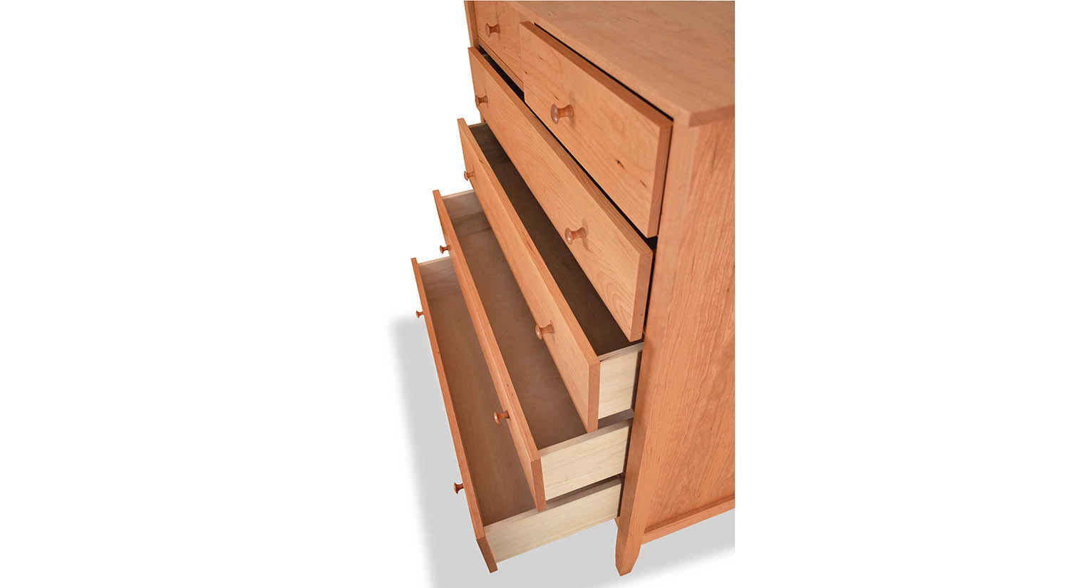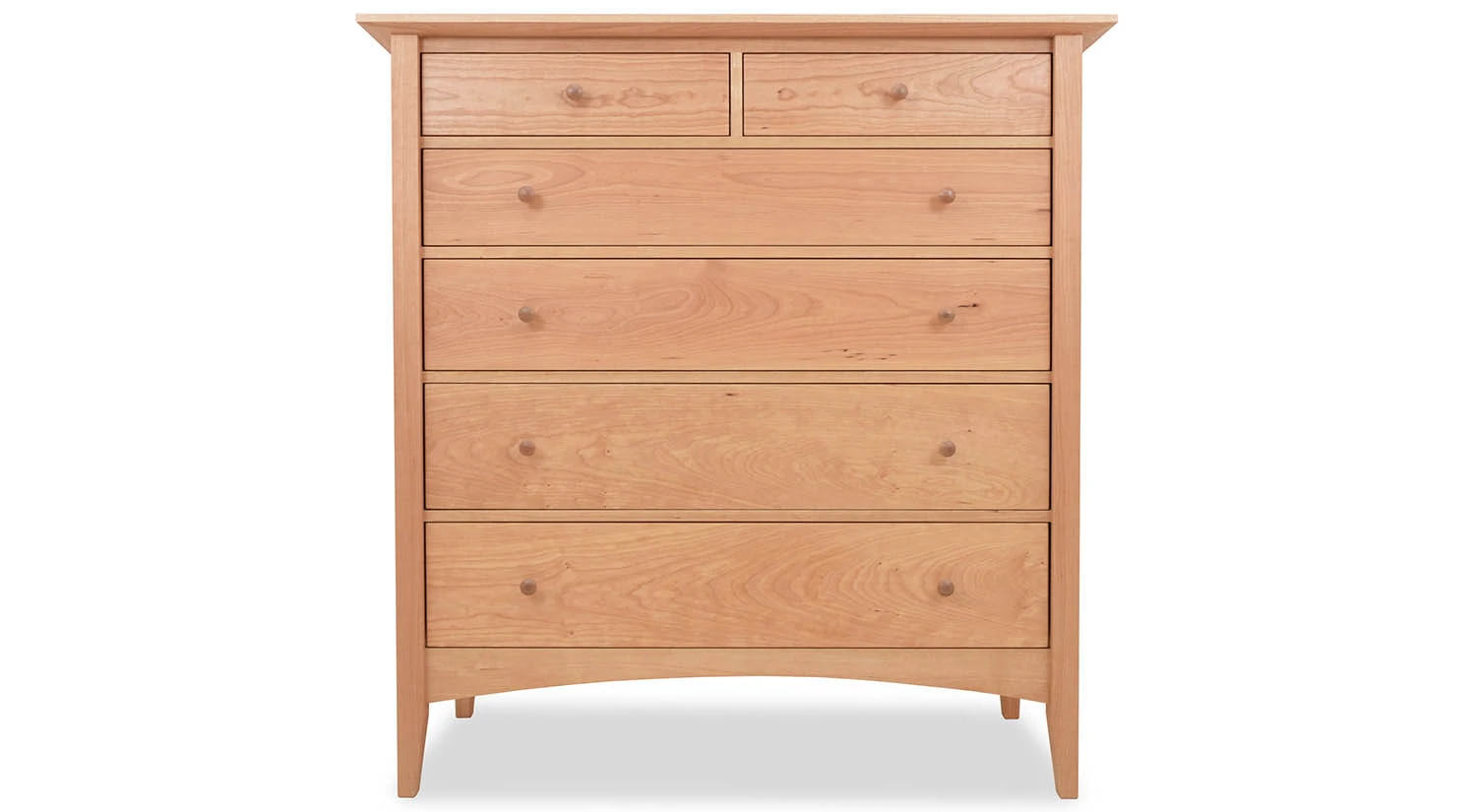 If you’re looking for a little more space, the Canterbury 6 Drawer Wide Chest is 48” wide to give you plenty of storage. This sleek and contemporary chest comes in cherry, maple, or walnut wood so you can choose how light or dark you want your piece to be.