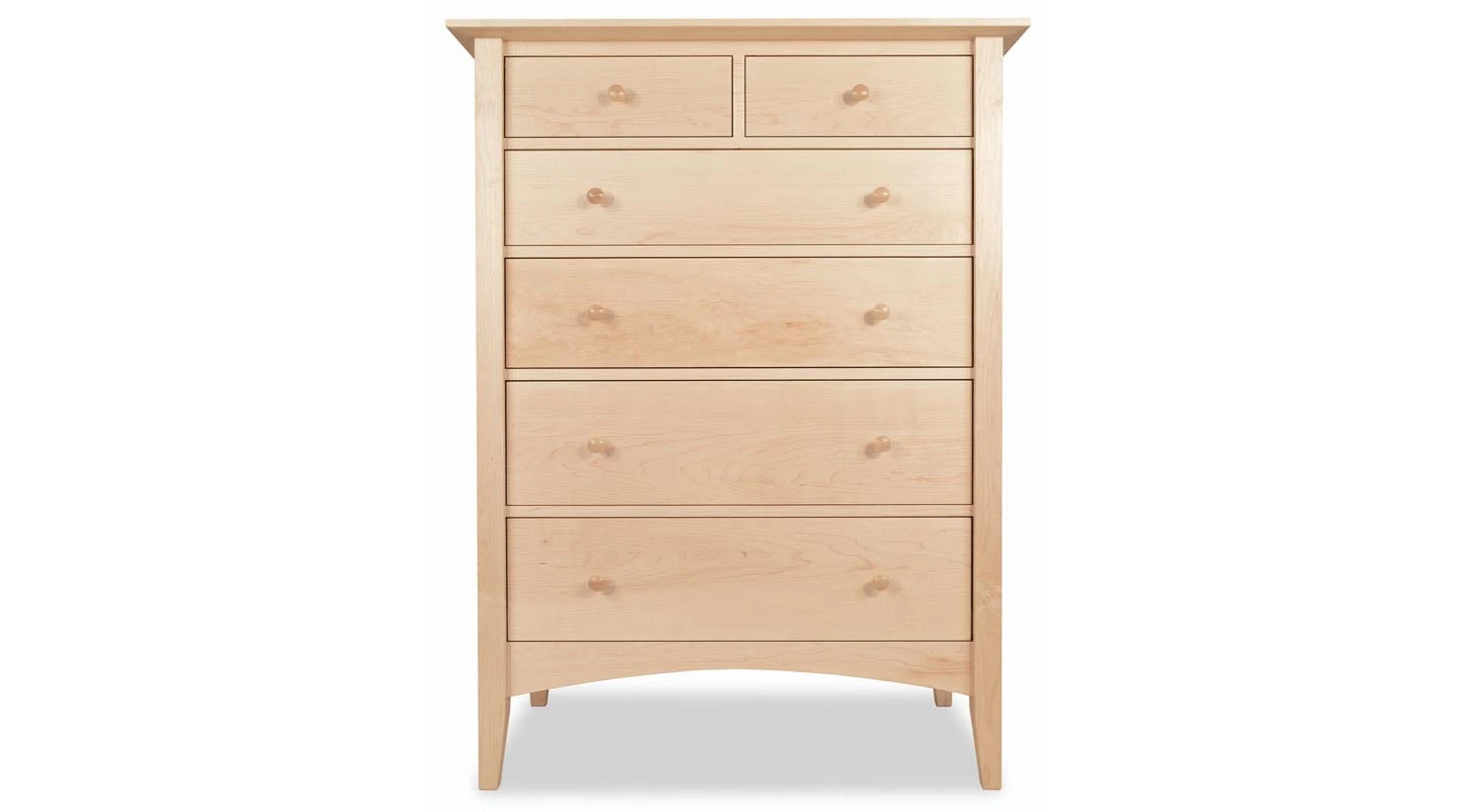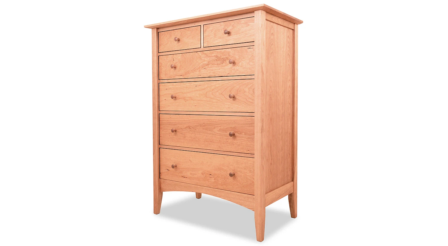 Spacious and sturdy, the Canterbury 6 Drawer Chest features a pair of shallow drawers at the top followed by four deeper ones below. It comes with a standard single extension slide or a full-extension soft close slide, and you can choose from cherry, maple, or walnut wood to complete your piece.
