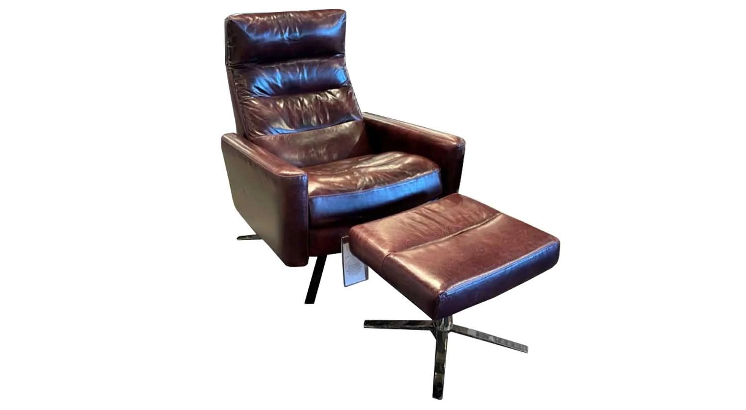 The Cirrus Comfort Air Chair and Ottoman by American Leather is now in stock. The chair is a large size with a standard size ottoman. Both are upholstered in Mont Blanc Garnet Leather.