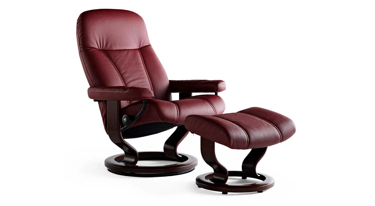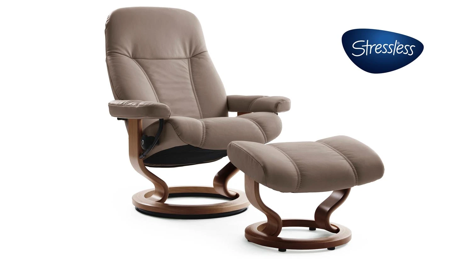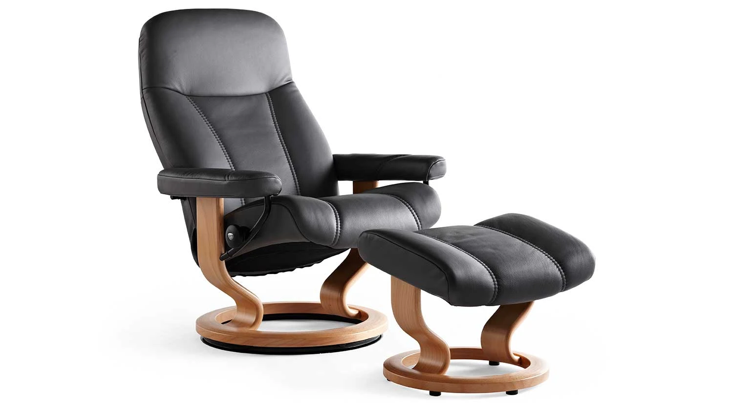 The Consul Stressless Recliner features the classic Stressless look with simple lines. Each chair uses the GlideSystem, which automatically adjusts the chair as you recline.
