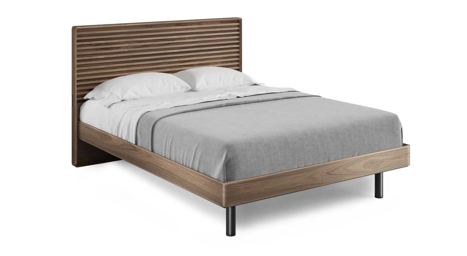 With its thoughtful design and minimalist aesthetic, the Cross-Linq Bed has been built for our modern world. Two charging stations are discreetly placed on either side of the slatted headboard, allowing you to recharge your electronics overnight so they’re ready to go the next morning. Contoured edges and recessed legs prevent painful run-ins with the bed and add an understated elegance that goes beautifully in any bedroom.