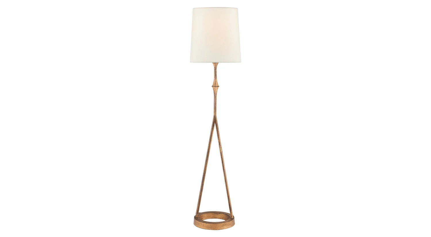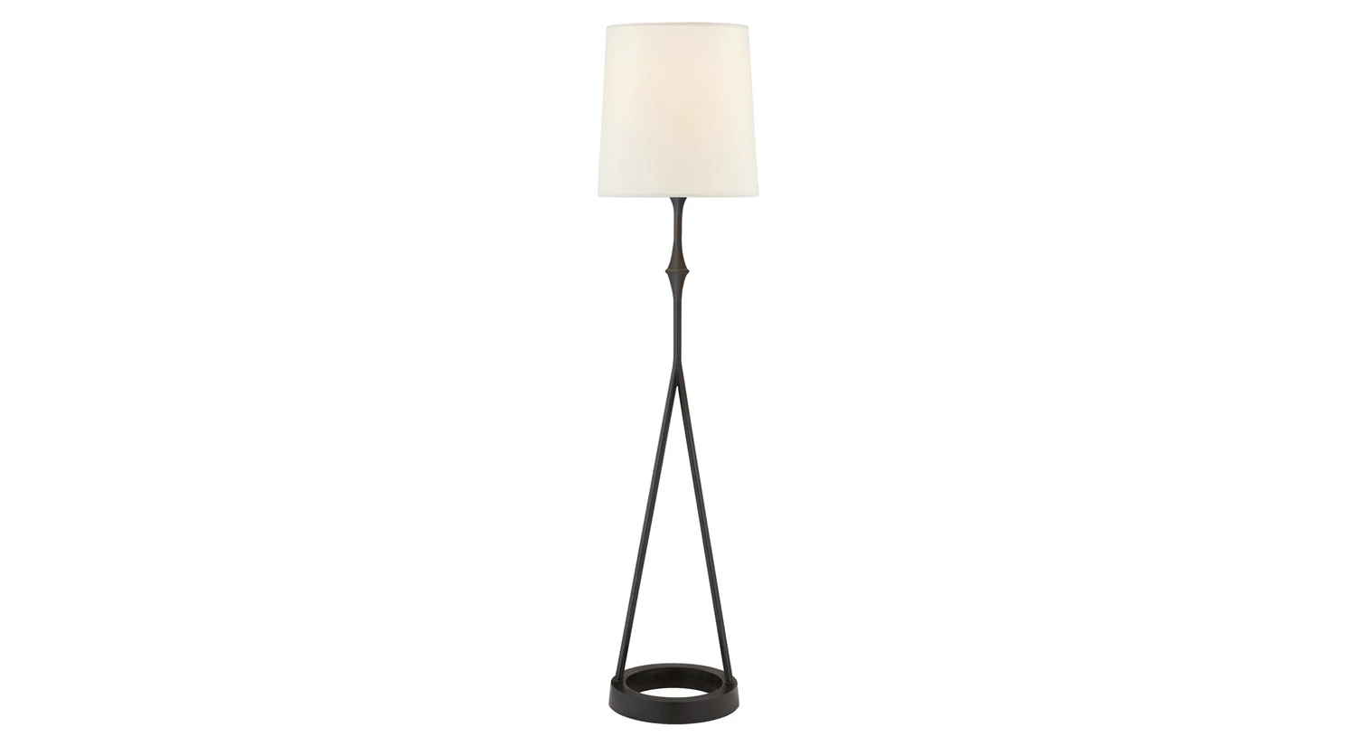 The Dauphine Table Lamp stands on a round base with conjoining legs, making it a notable piece thatβs far from ordinary. An aged iron finish gives this contemporary lamp an authentic feel with a natural paper drum shade to complete its clean design.