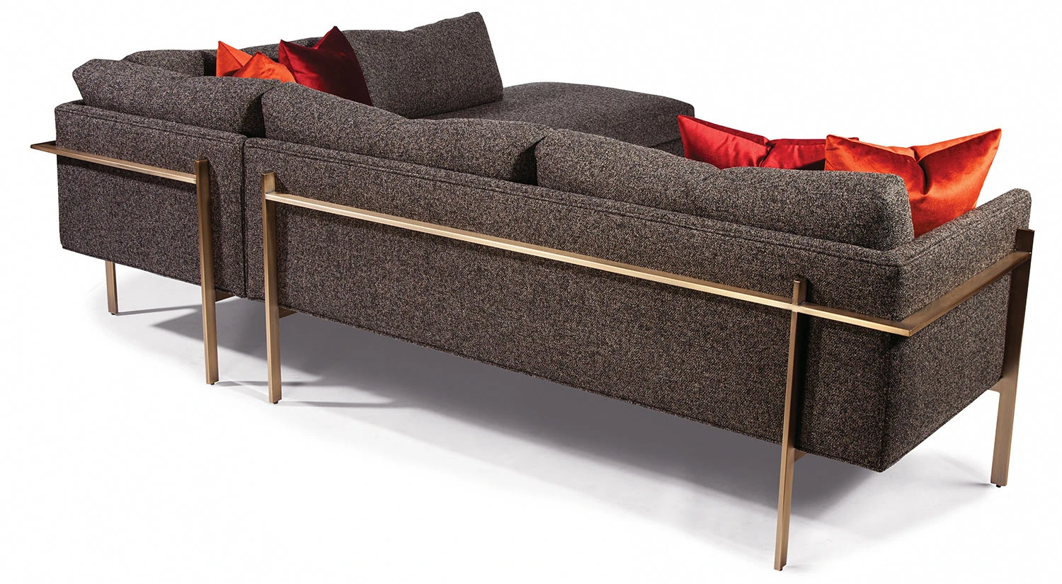 The Drop In Sectional features a comfortable mid-century style with wide-cushioned seating. It has a relaxed look for everyday lounging and ample space for gathering with friends and family. Each sectional piece is supported by an exposed metal frame with your choice of a Stainless Steel or Brushed Bronzed finish.