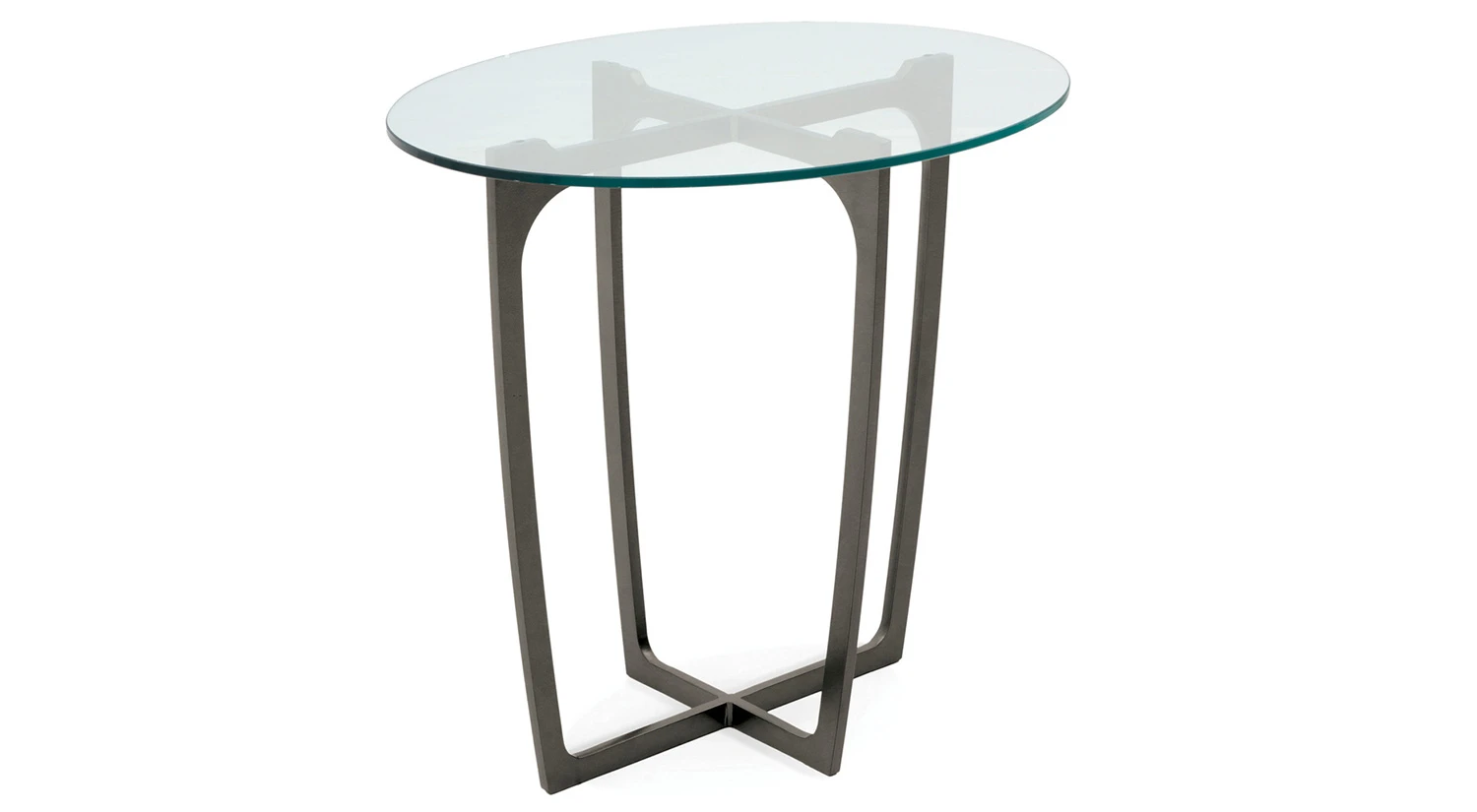 The ascending legs on the Fontana End Table by Charleston Forge reach up and support a thick, oval glass top, creating an open feel in any living space. Like all of Charleston Forge products, this piece is hand-forged in North Carolina.