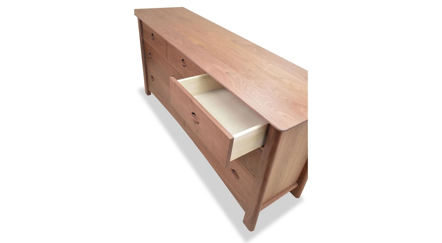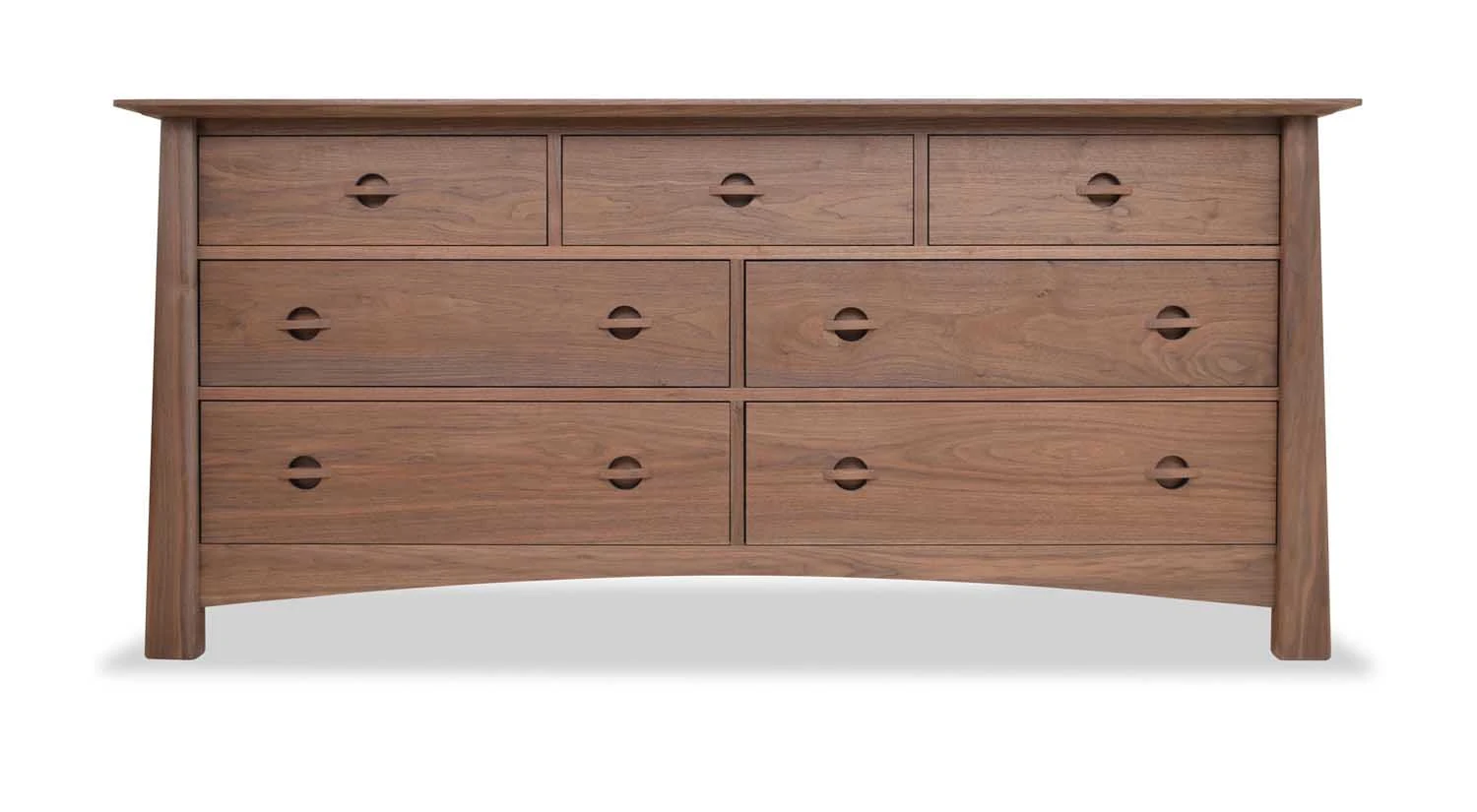 The Harvestmoon 7 Drawer Dresser from Maple Corner is handcrafted in Vermont from solid wood. Each piece of wood is hand-selected to design a consistent and beautiful piece.
