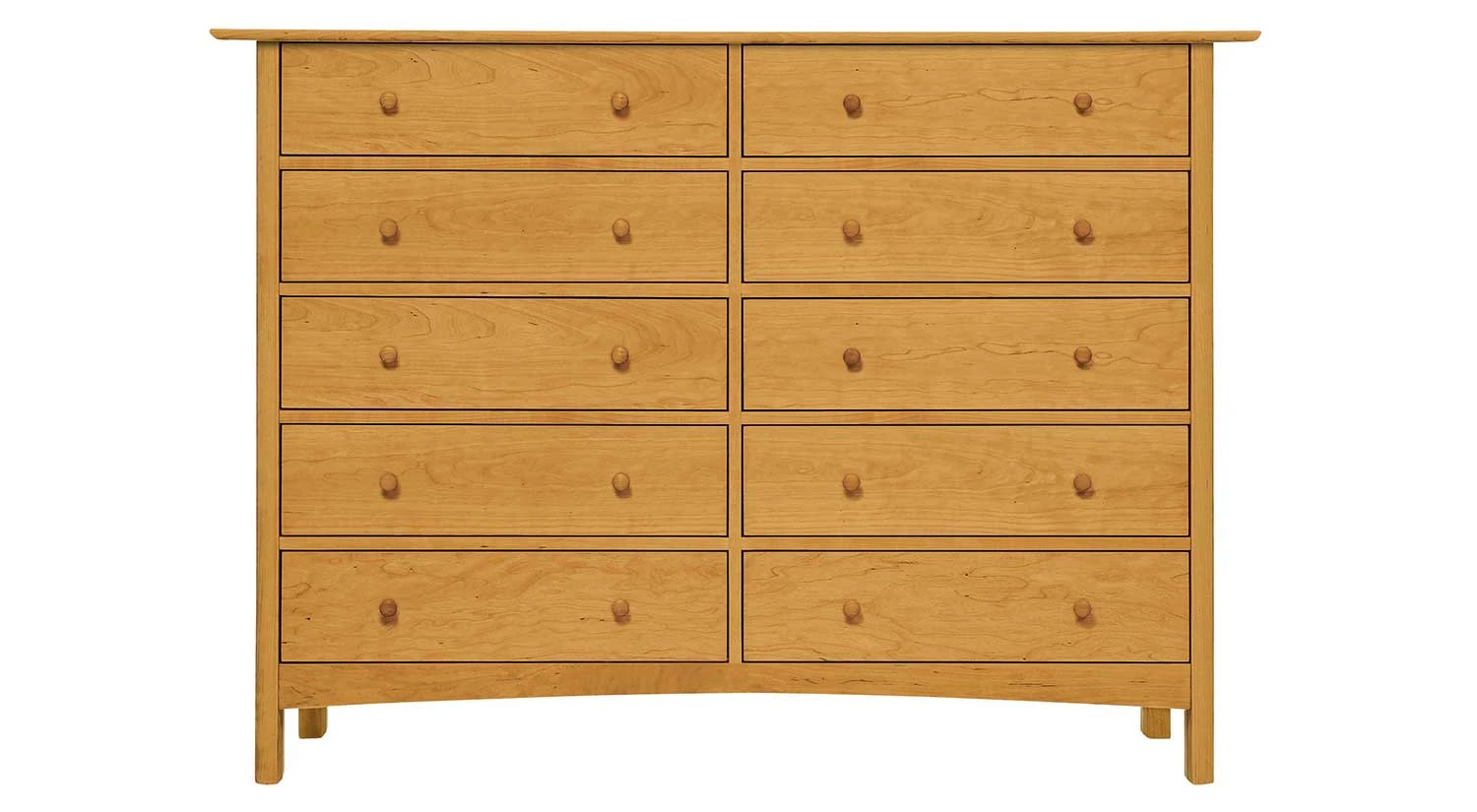 The Heartwood collection is made in New England from solid wood with a beautiful mix of Shaker and Art Deco style. An oil and wax finish and crafted rounded edges add a soft appearance. The drawers are constructed with English dovetail joinery for durability.