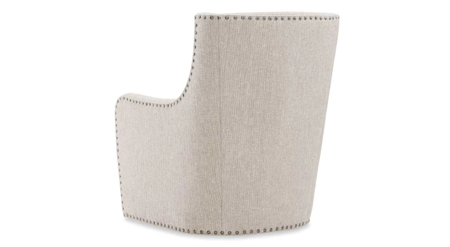 The Heidi Swivel Chair has a transitional look, that can from Modern to Traditional with ease. With its tight seat and loose back, you are sure to get a comfortable chair for reading or just talking at fireplace. Bonus, who doesn’t love a swivel! Available in a variety of textured and colorful farbics and butter-soft leathers. The Heidi is standard with brass nailheads.