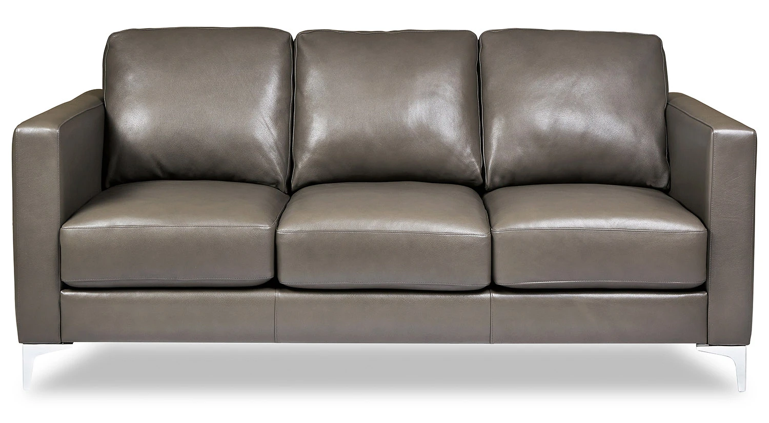 The Kendall Sofa by American Leather features a tuxedo arms, tall legs, and contemporary style.
