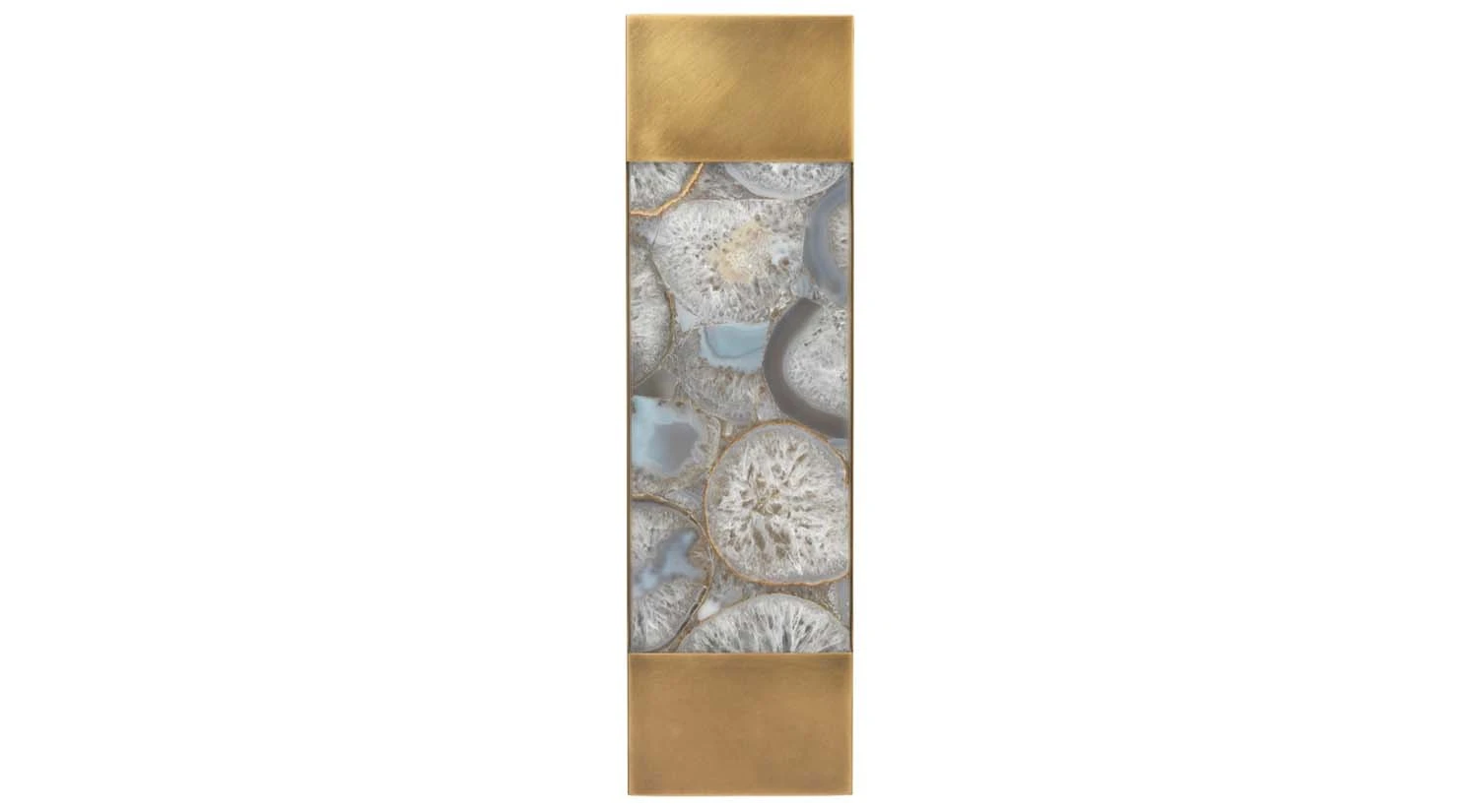 Designed to be anything but ordinary, the Leopold Wall Sconce doubles as a source of light and decorative accent. This unique fixture is made with pieces of natural stone that each have their own set of intricate characteristics, held together by resin and antique brass. It will bring a one-of-a-kind look to your wall space and draw everyone’s attention to its beauty.