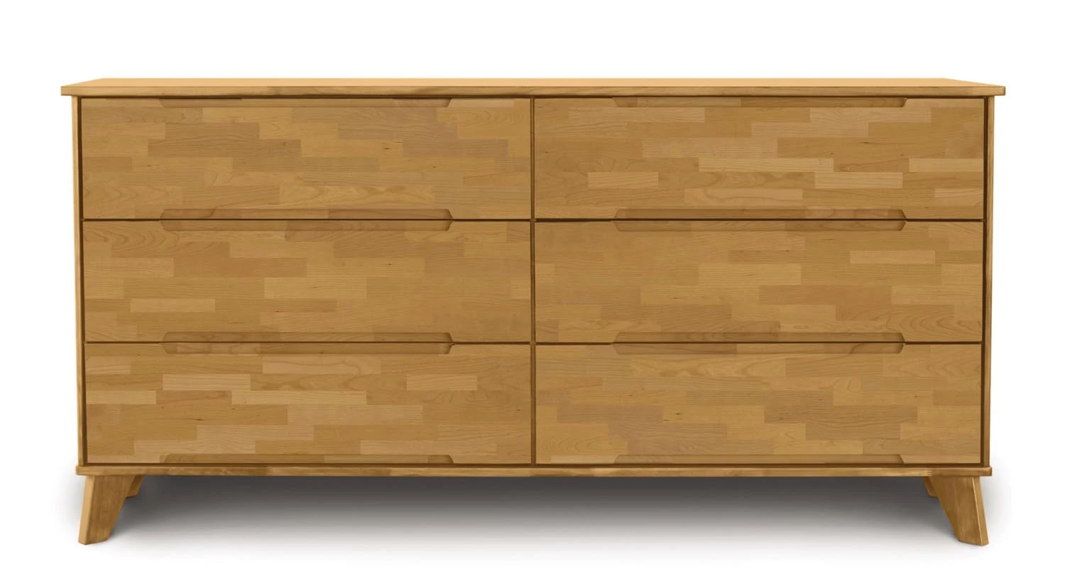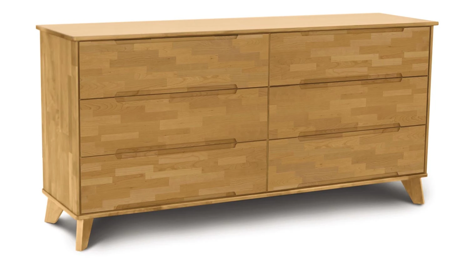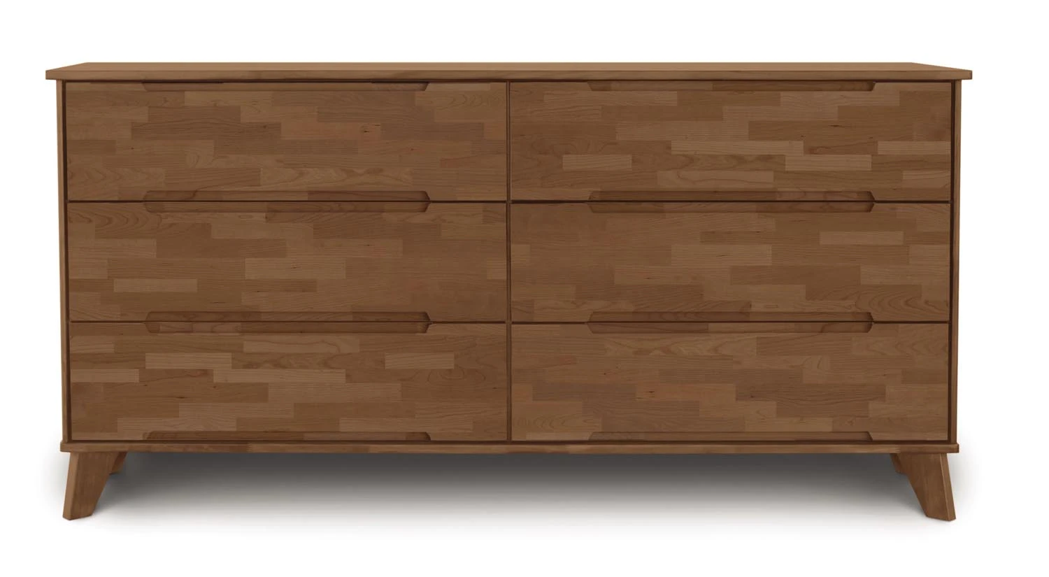 Copeland Furniture champions sustainable lumber and eco-friendly production. The Linn 6 Drawer Dresser is composed from upcycled, reclaimed American black walnut or cherry hardwood and features a contemporary design and a beautiful natural finish. Also Available in Natural and Autumn Cherry and Natural and Stained Oak finishes.