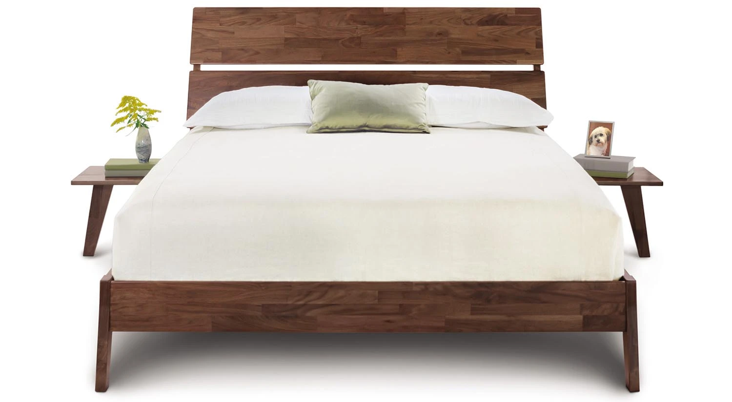 Copeland Furniture champions sustainable lumber and eco-friendly production. The Linn Bed is shown in upcycled, reclaimed American black walnut hardwood and features a contemporary design and a beautiful natural finish. Also available in natural and saddle cherry and natural and stained oak.