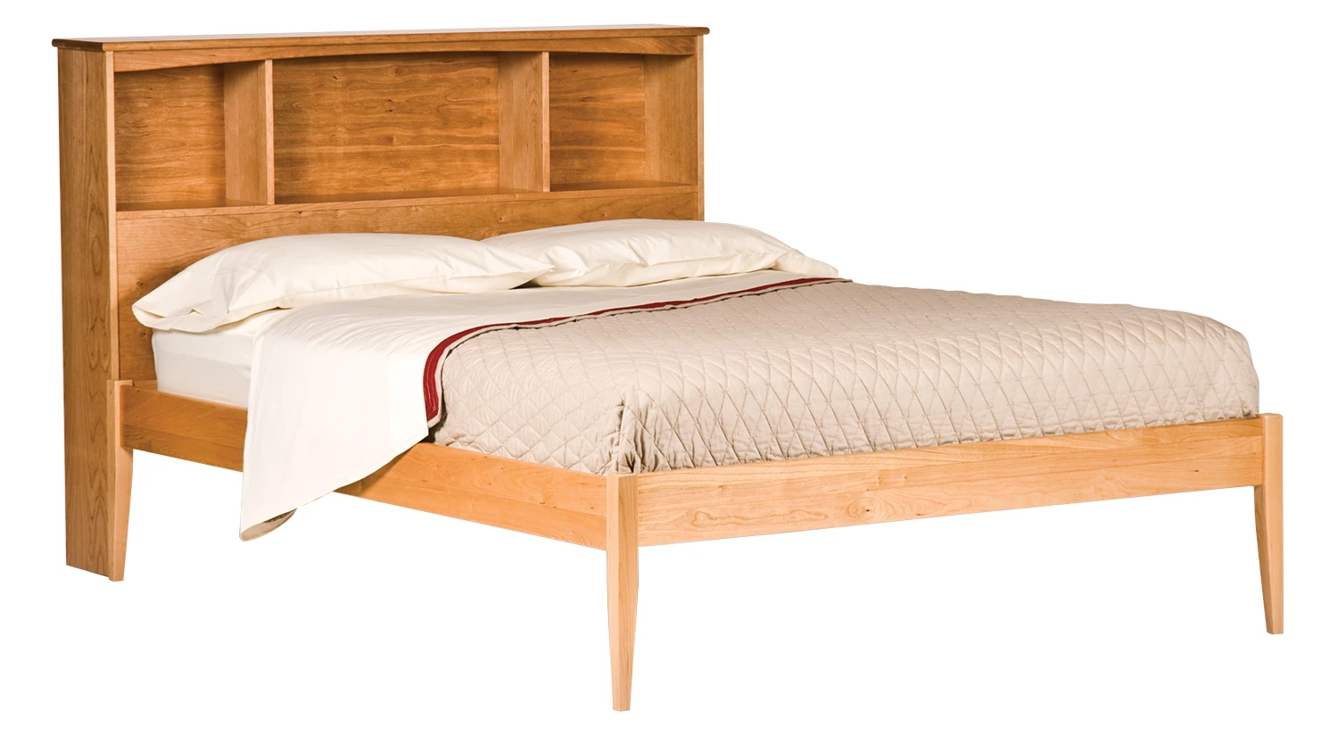 We love this Massachusetts-made bed from Woodforms. It features a convenient bookcase headboard, which is perfect for storing your books, alarm clock, and other decorative items. The Luna Bookcase Bed is available in Natural Cherry, Autumn Cherry, and Chocolate Cherry.