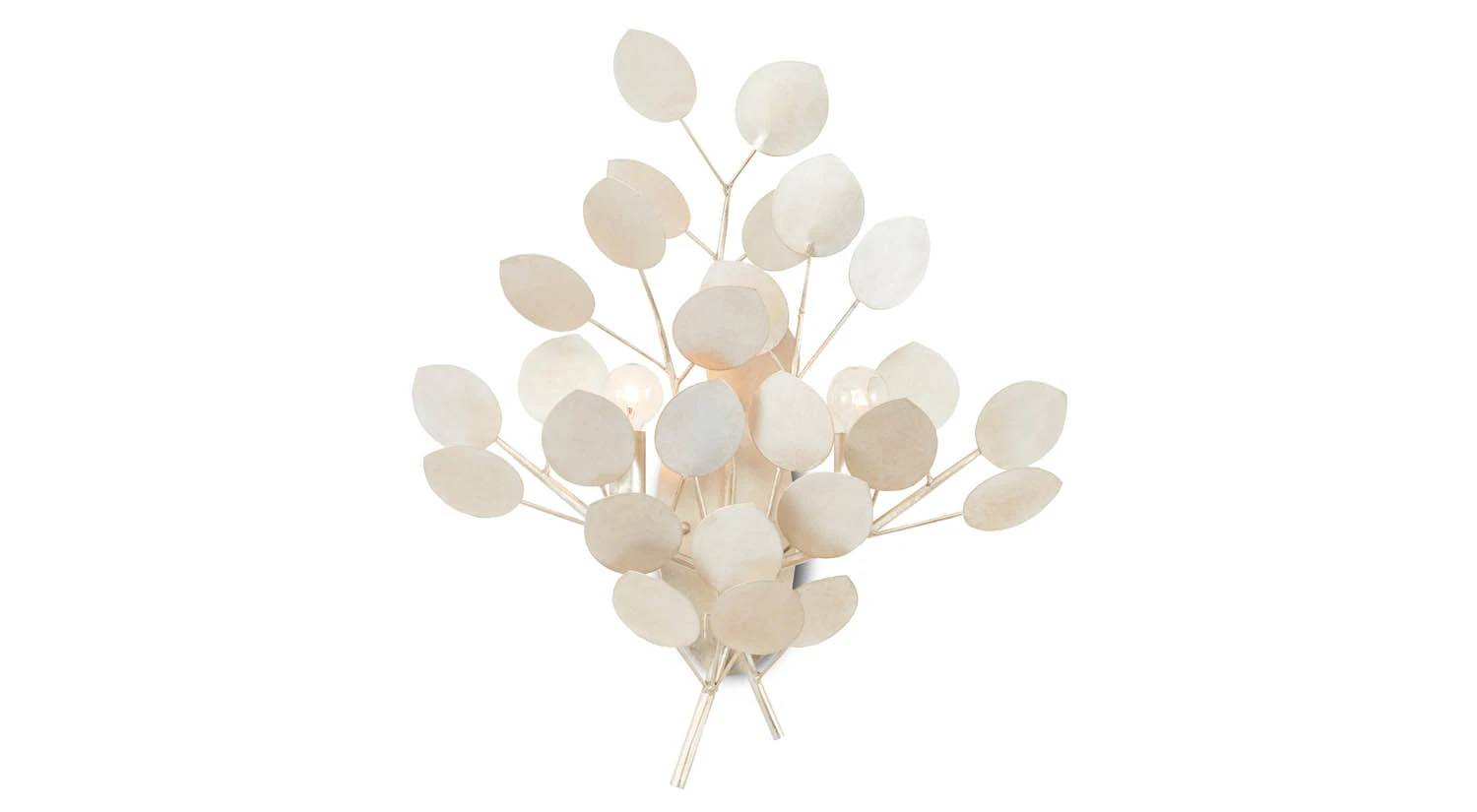 The Lunaria Wall Sconce will be the star of your decor, adding a whimsical touch to your wall space. Designed to resemble fluttering leaves, this beautiful fixture comes in a silver finish for a refined look while giving a generous glow to its surroundings.