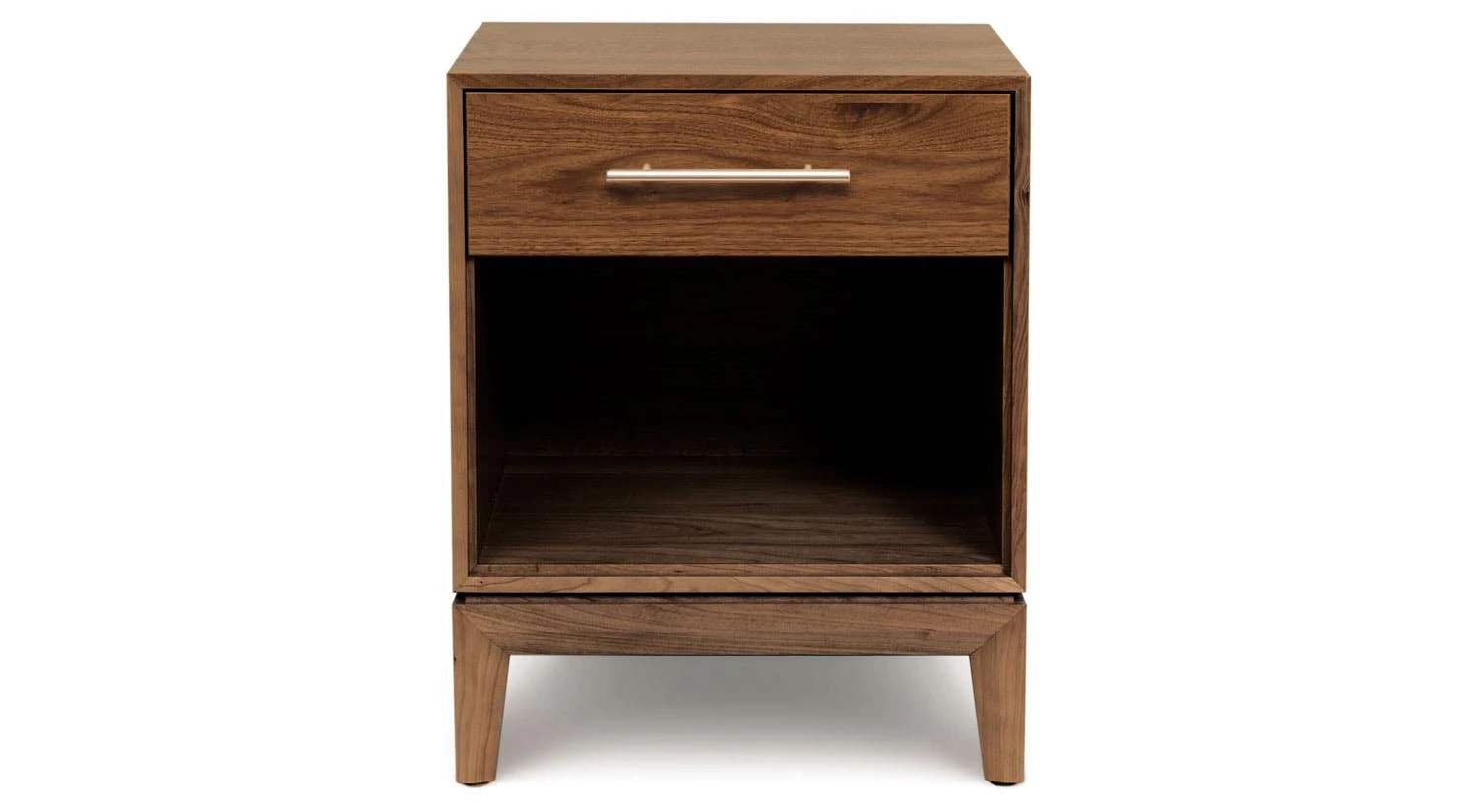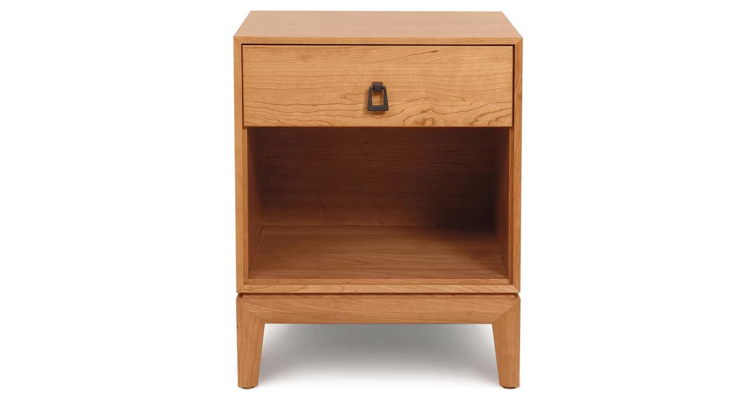 The Mansfield Collection from Copeland offers a sophisticated look with contemporary lines. Made from solid cherry or walnut hardwood in Vermont, it has soft close drawers with optional black bronze pulls on cherry wood case and long nickel bar pulls on walnut cases.