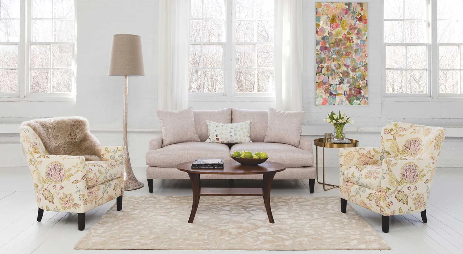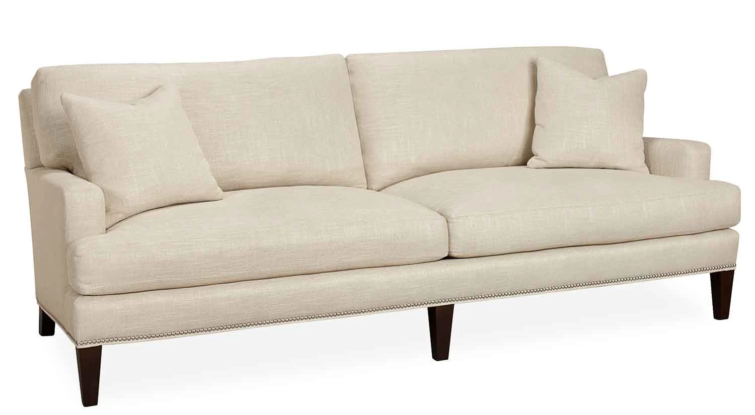 The Mia collection boasts a clean track arm and cozy sit. The Mia sofa comes standard with two toss pillows.