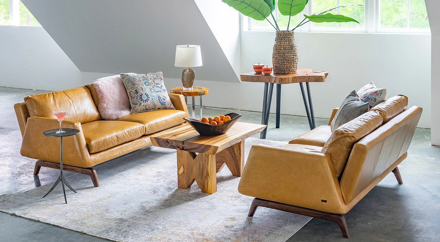 The Nash sofa effortlessly blends comfort with modern, clean lines. The interesting angles on these stunning natural walnut legs are the perfect perch for a fabric or leather sofa.