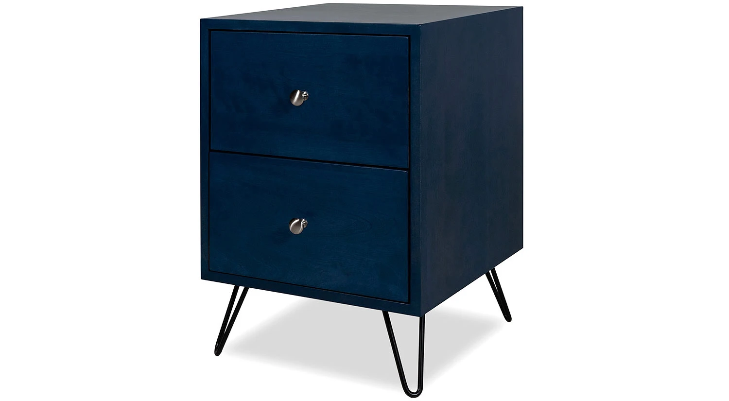 The Newton collection from the Manchester Collection is made in NH and features a frameless, inset design with mitered corners and solid wood construction. The collection features the option of four base styles to choose from, including midcentury, block, hairpin, and plinth.