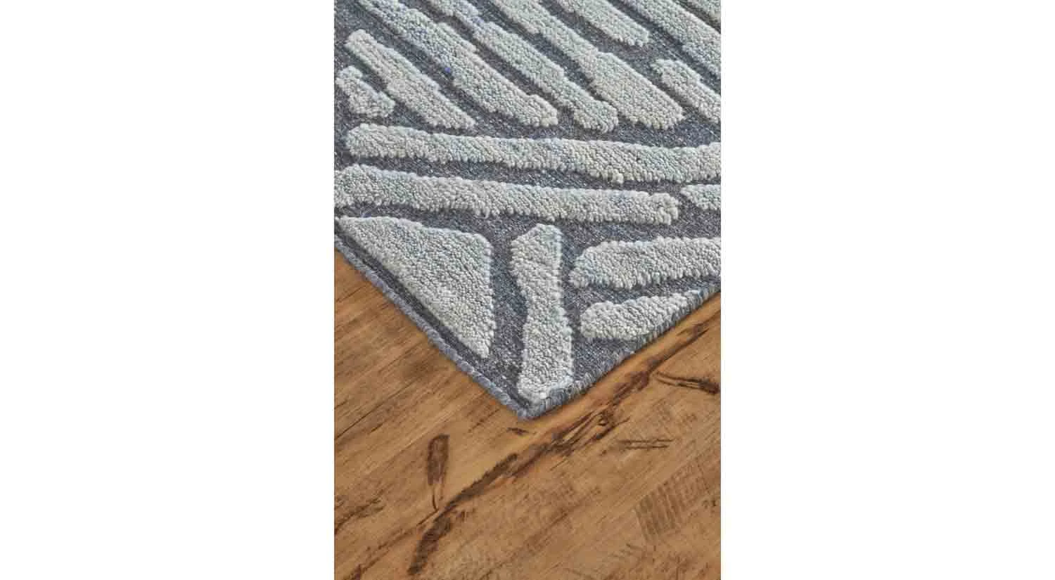 The Norah Light Blue/Dark Gray Rug brings a striking look to modern spaces yet remains resilient against foot traffic. A three-dimensional pattern gives the rug texture and movement while its color scheme features classic shades of blue and gray.
