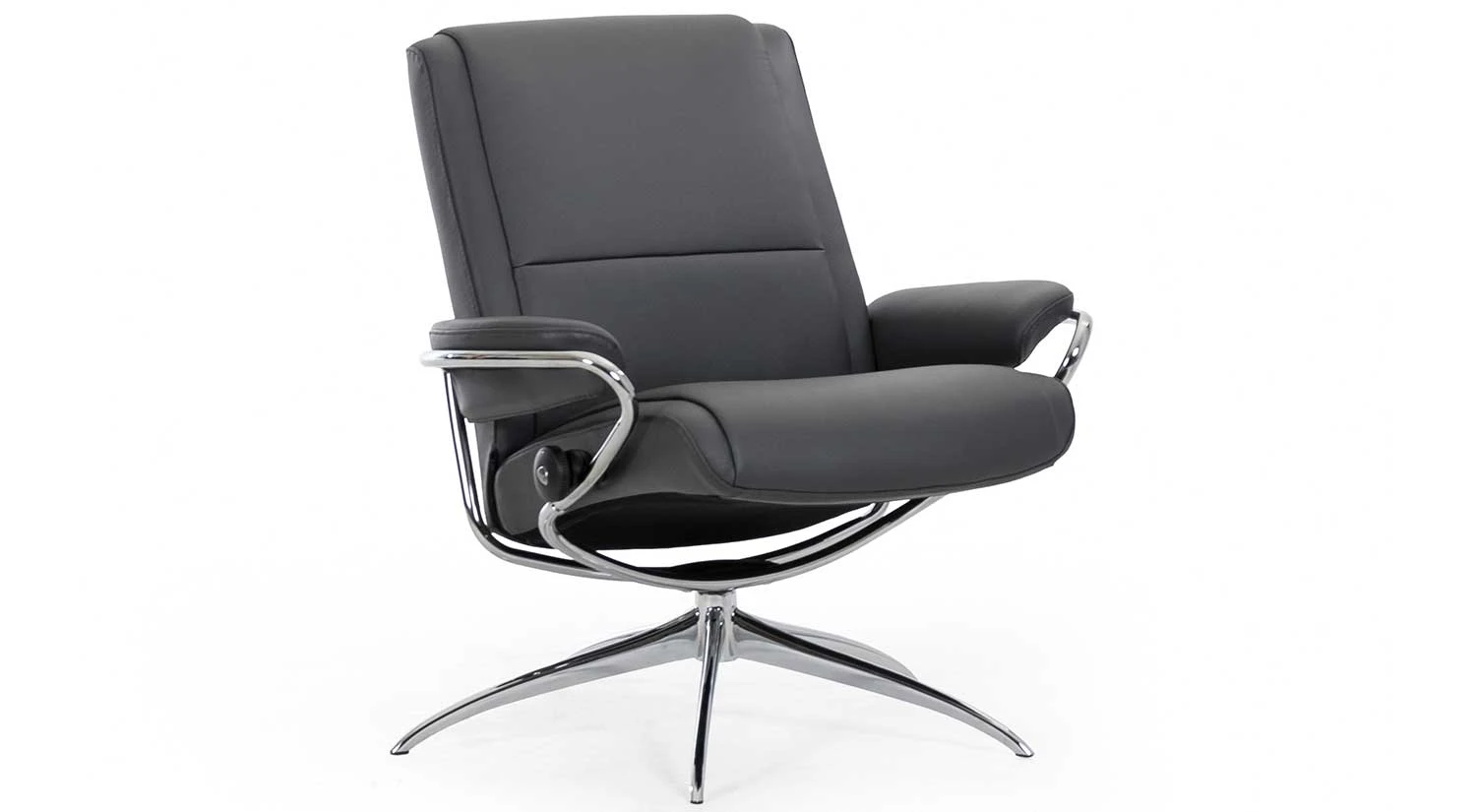 The Paris Stressless Recliner features a vintage-inspired design and a star base. Each chair uses the BalanceAdapt system, which enables a swivel, rock, and recline motion.