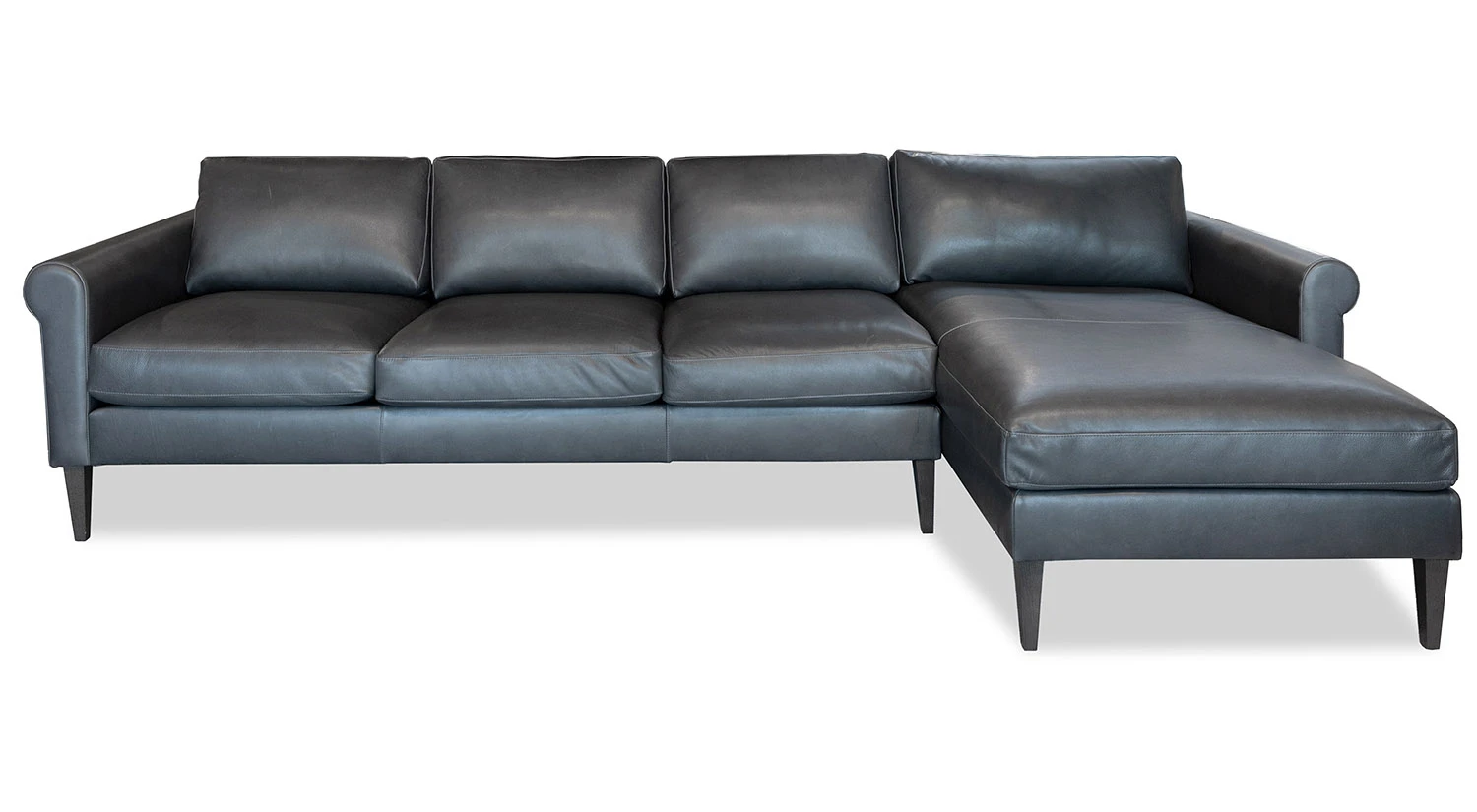 We’re offering the Personalize Collection Sectional online as a 3-seat sofa with chaise configuration, rolled arm, and wooden legs. We also offer the entire fabric and leather collection from American Leather in our showrooms, so you can design the sectional you want in the perfect color as well.