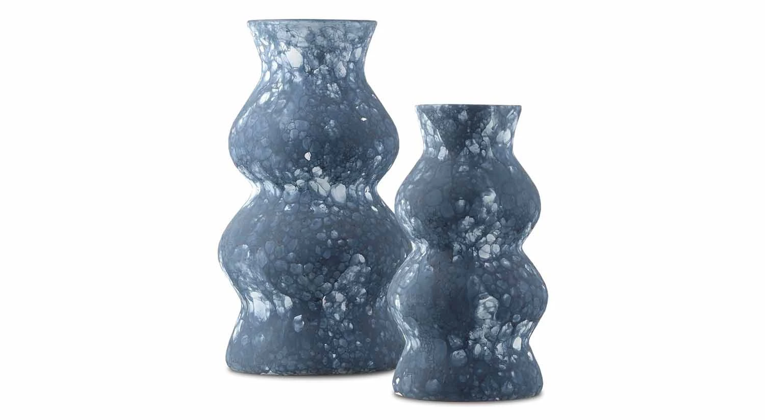 Thoughtfully crafted from terracotta, the Phonecian Vases are beautiful home accents that blend modern and ancient appeal. A navy and white finish gives these decorative pieces a calming energy while a curved silhouette creates a dramatic edge.