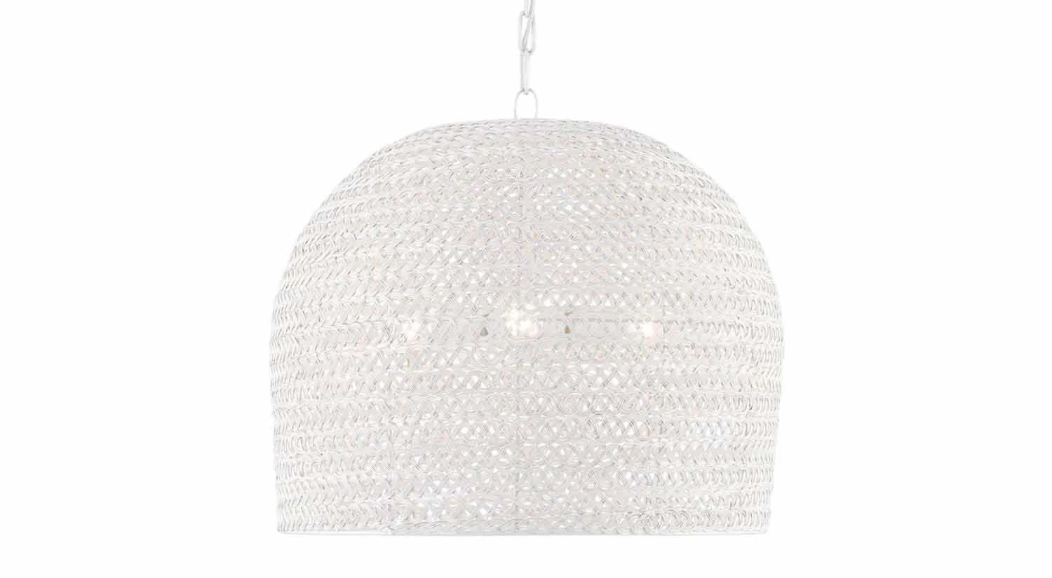 The Piero Chandelier looks like a beautifully woven basket that also functions as a light fixture. An all-white finish gives it a fresh, clean feel thatโs complemented by an intricate weave for texture.