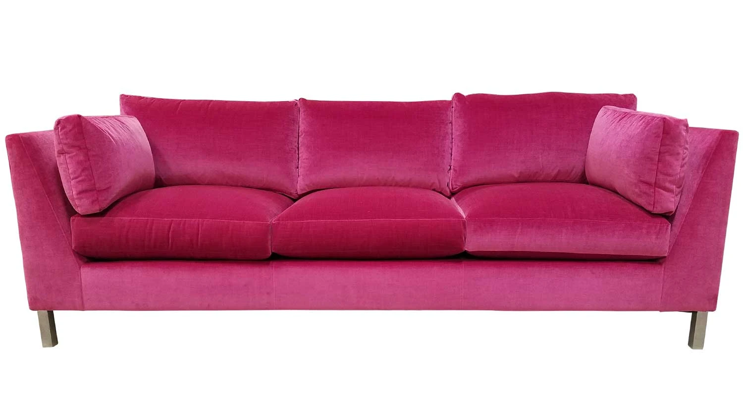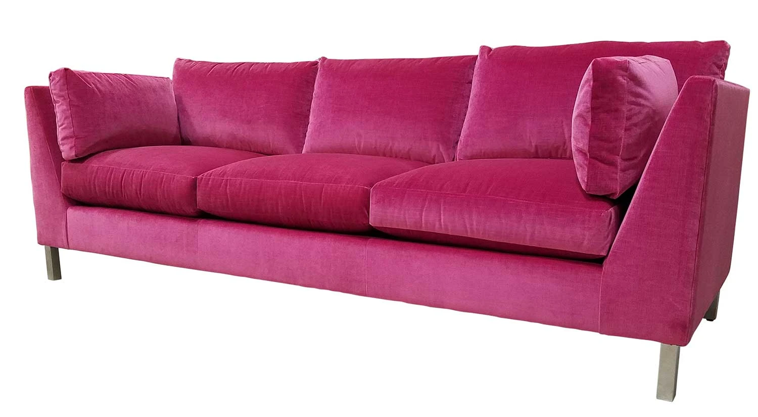 The Rita sofa is super comfortable with bumper side pillows and comfort down seat and back cushions. The Rita has a modern flair with a choice of either brushed nickel or brushed bronze legs. Available in a wide selection of fabrics.