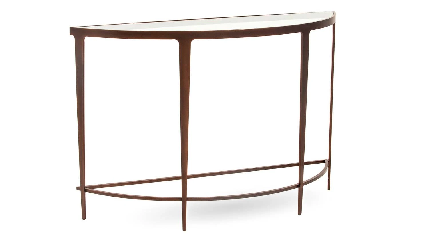 The Roundabout Console Table in Oil Rubbed Bronze finish with glass top is now in stock.