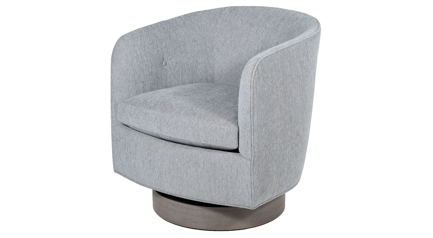 The Roxy Swivel Chair with Wood Base by Thayer Coggin is a beautiful, classic style that works in any living space.
