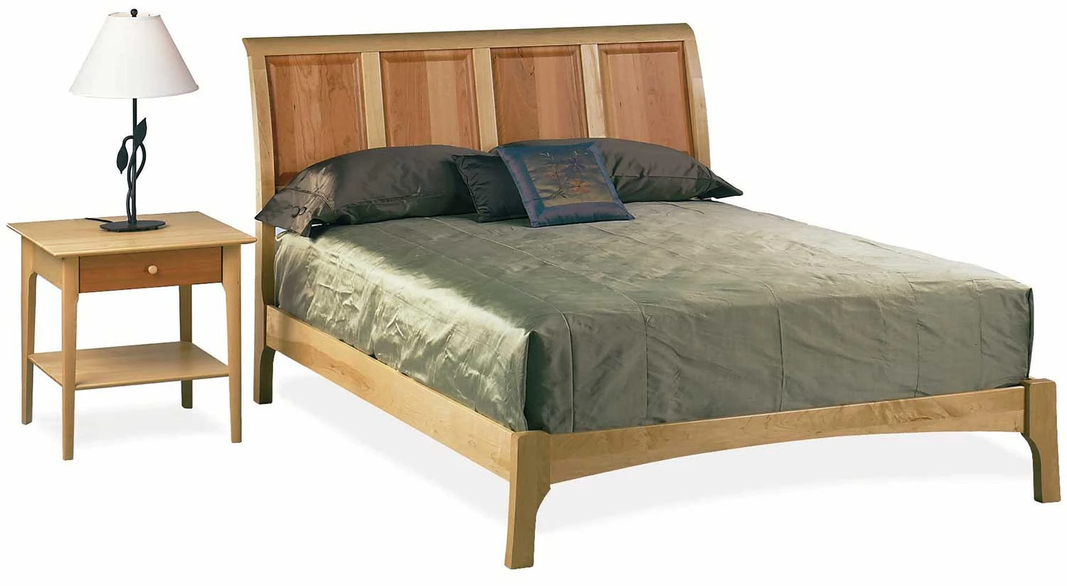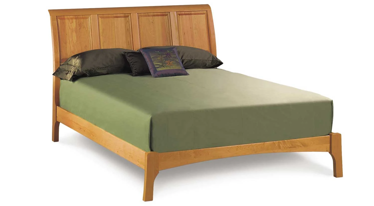 The Sarah Sleigh bed from Copeland is available in solid cherry in a variety of finishes or a combination of maple and cherry wood. The Sarah Sleigh Bed is available as a platform only.