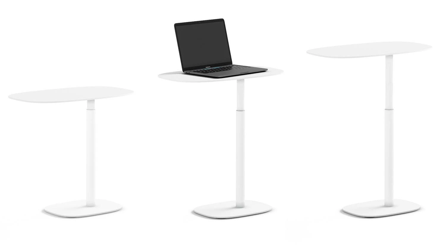 The Serif Laptop Lift Table – Salt takes your work surface to new heights. This small, convenient table adjusts effortlessly on a smooth pneumatic cylinder, and a simple push or pull glides it to the perfect height. Its slim and sturdy base slides easily under a sofa or chair, always keeping the versatile surface close at hand for work or play.