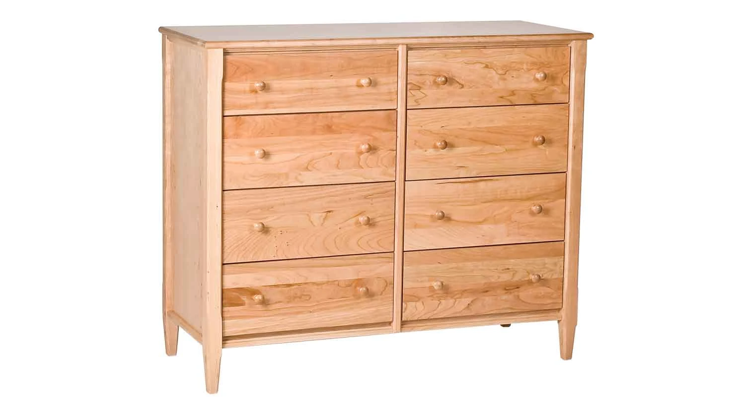 The Shaker Collection from Woodforms has a timeless look with beautiful detailing. Made locally in Massachusetts, the drawers have full extension glides and are constructed with French sliding dovetails. Available in Natural Cherry, Autumn Cherry, and Chocolate Cherry.