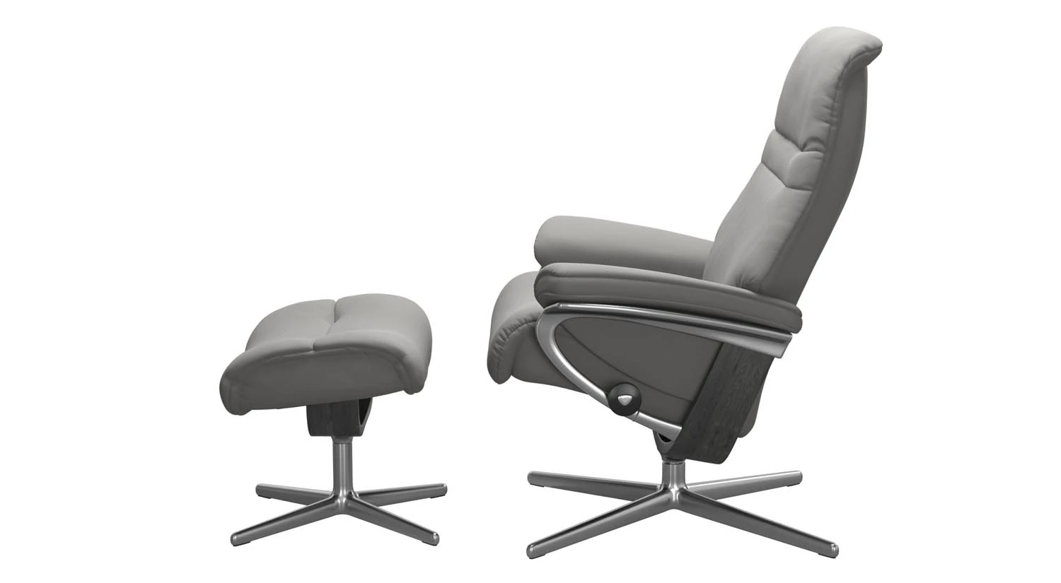The Sunrise Stressless Recliner features the classic Stressless look with cushioning on the armrests for extra comfort. Each chair uses the PlusSystem, which adjusts the headrest to maintain optimal neck support as you recline. These chairs also have the Signature Base, which enables smooth swivel, rock, and recline motion.