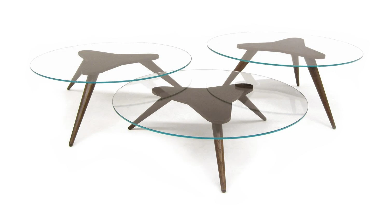 The Tripod Coffee Table makes a statement while maintaining its simplicity and elegance. This contemporary piece features a beautiful glass top with wood tapered legs, showing a tasteful blend of contrasting materials and creating intrigue from all angles.