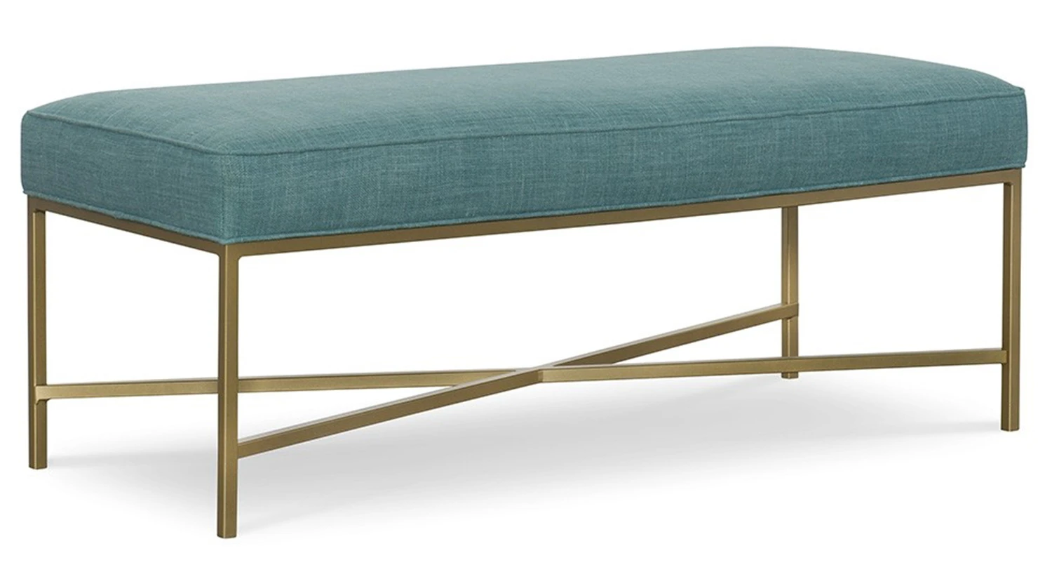 The Vixen Bench Ottoman by CR Laine has a contemporary metal base and can be used as an ottoman, coffee table or extra seating.