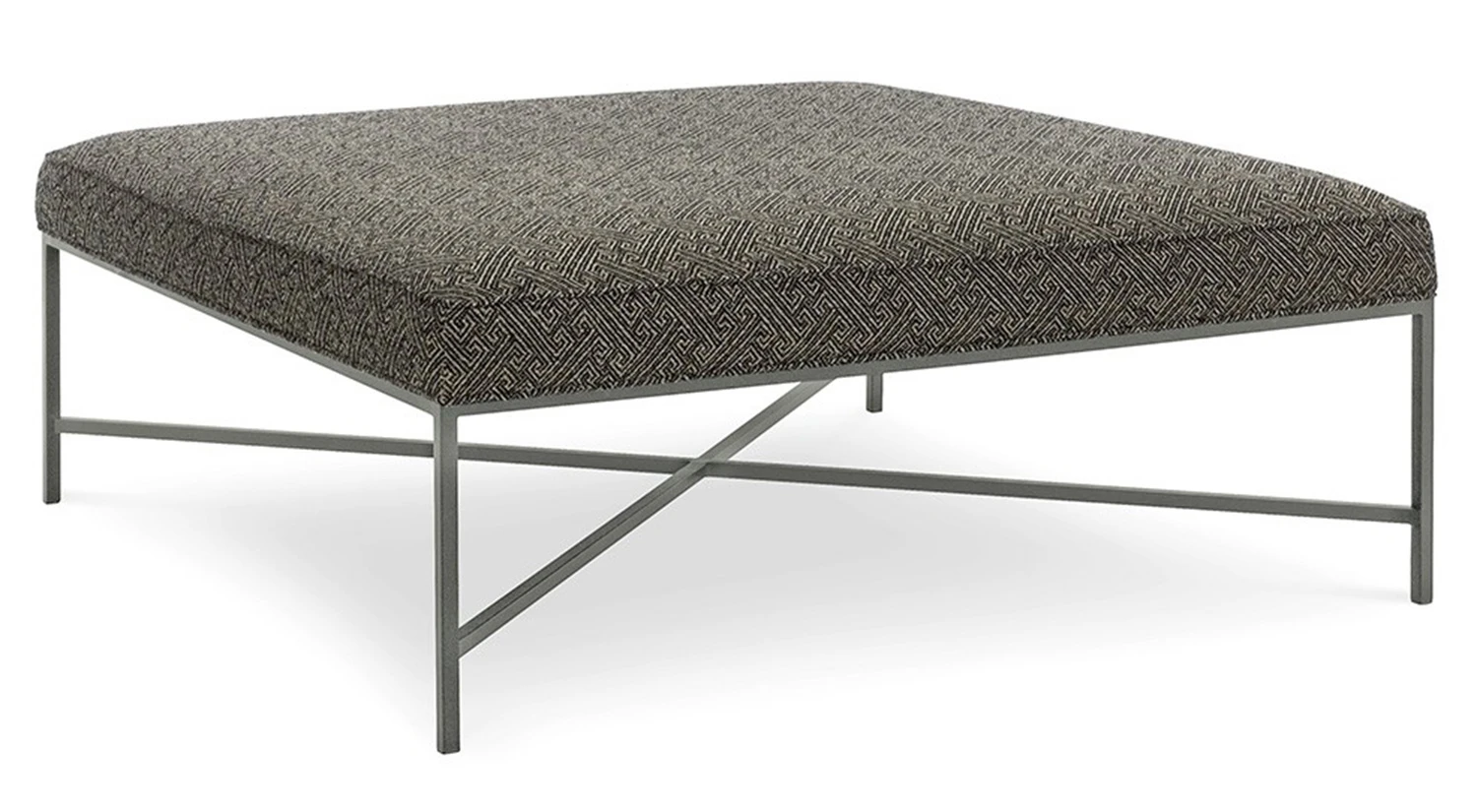 The Vixen Square Ottoman by CR Laine has a contemporary metal base and can be used as an ottoman or coffee table.