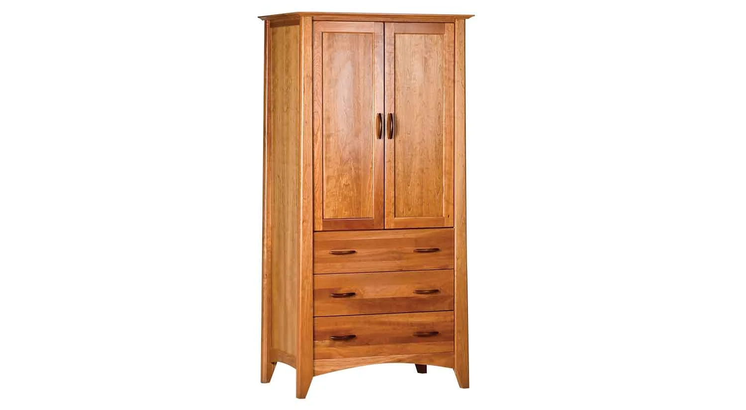 The Willow Collection from Woodforms is made in Massachusetts with elegant curves and a modern style. The handles are walnut stained cherry, and the full-extension glide drawers are constructed with sliding dovetails. Available in Natural Cherry, Autumn Cherry, and Chocolate Cherry.