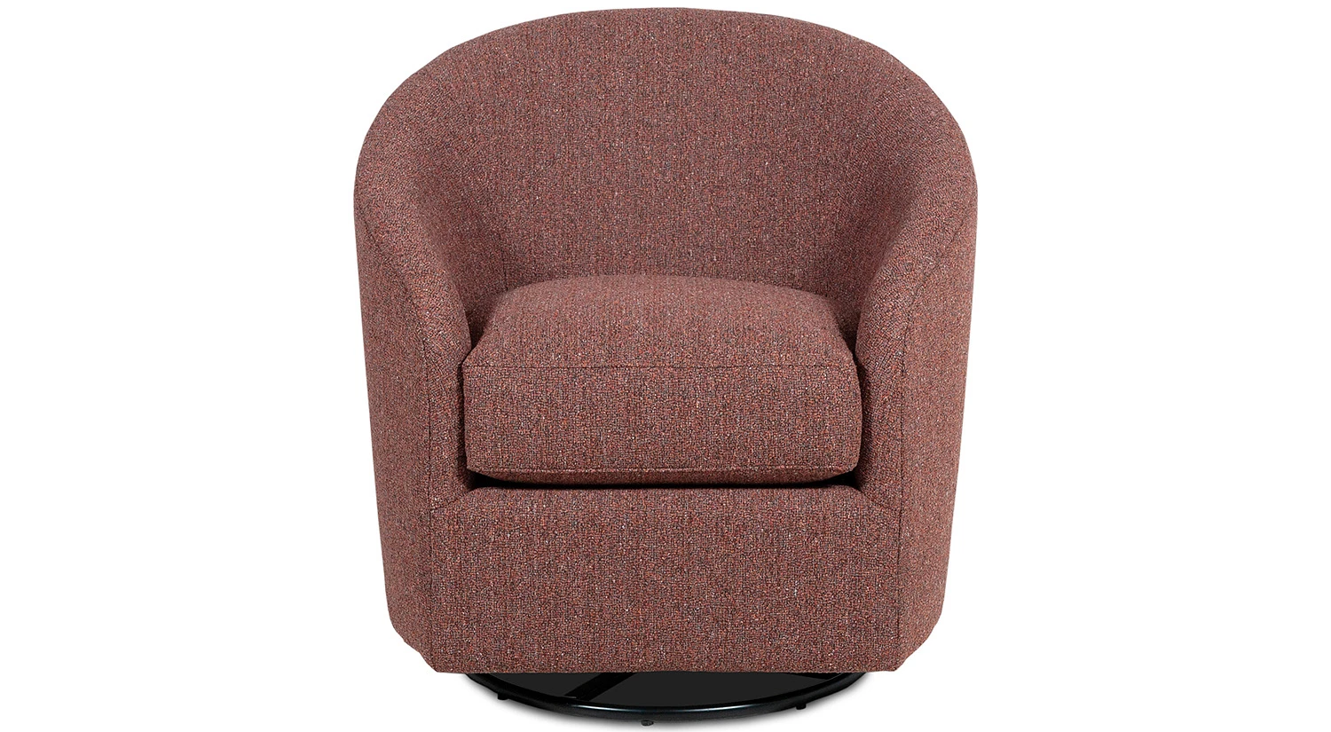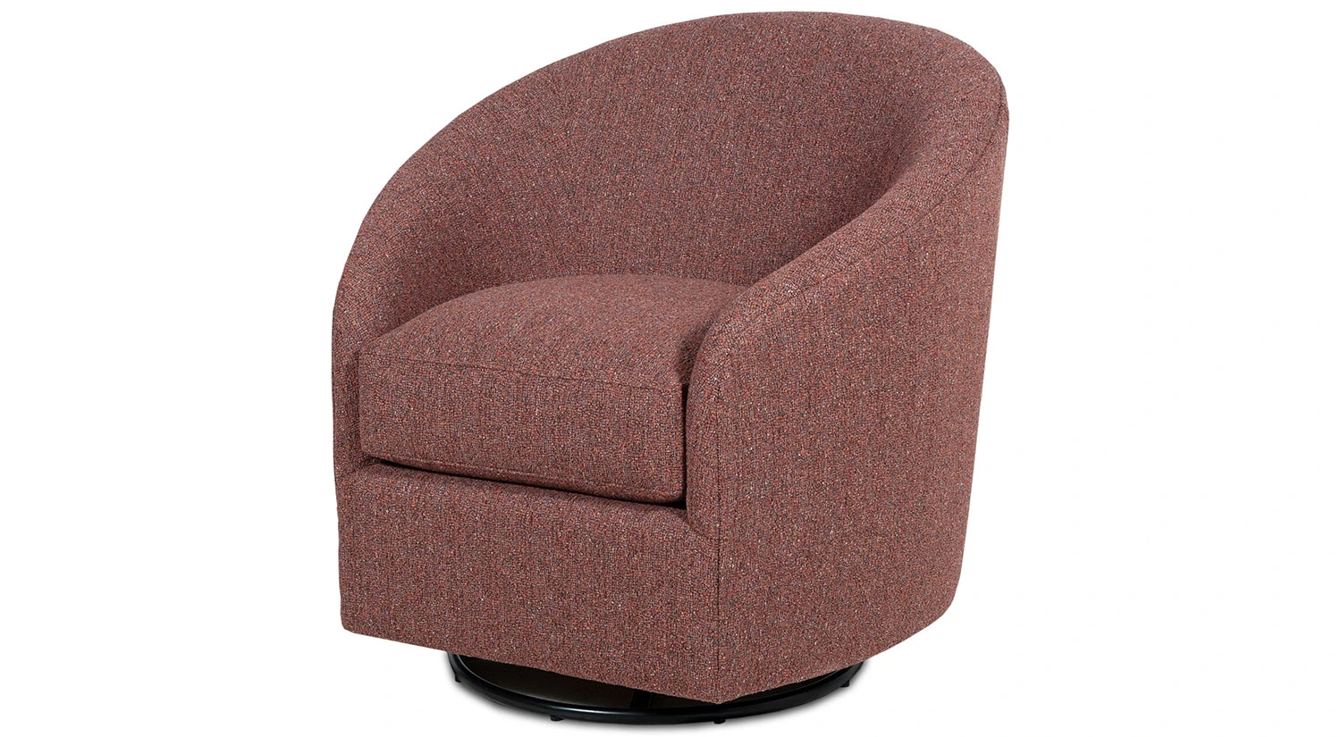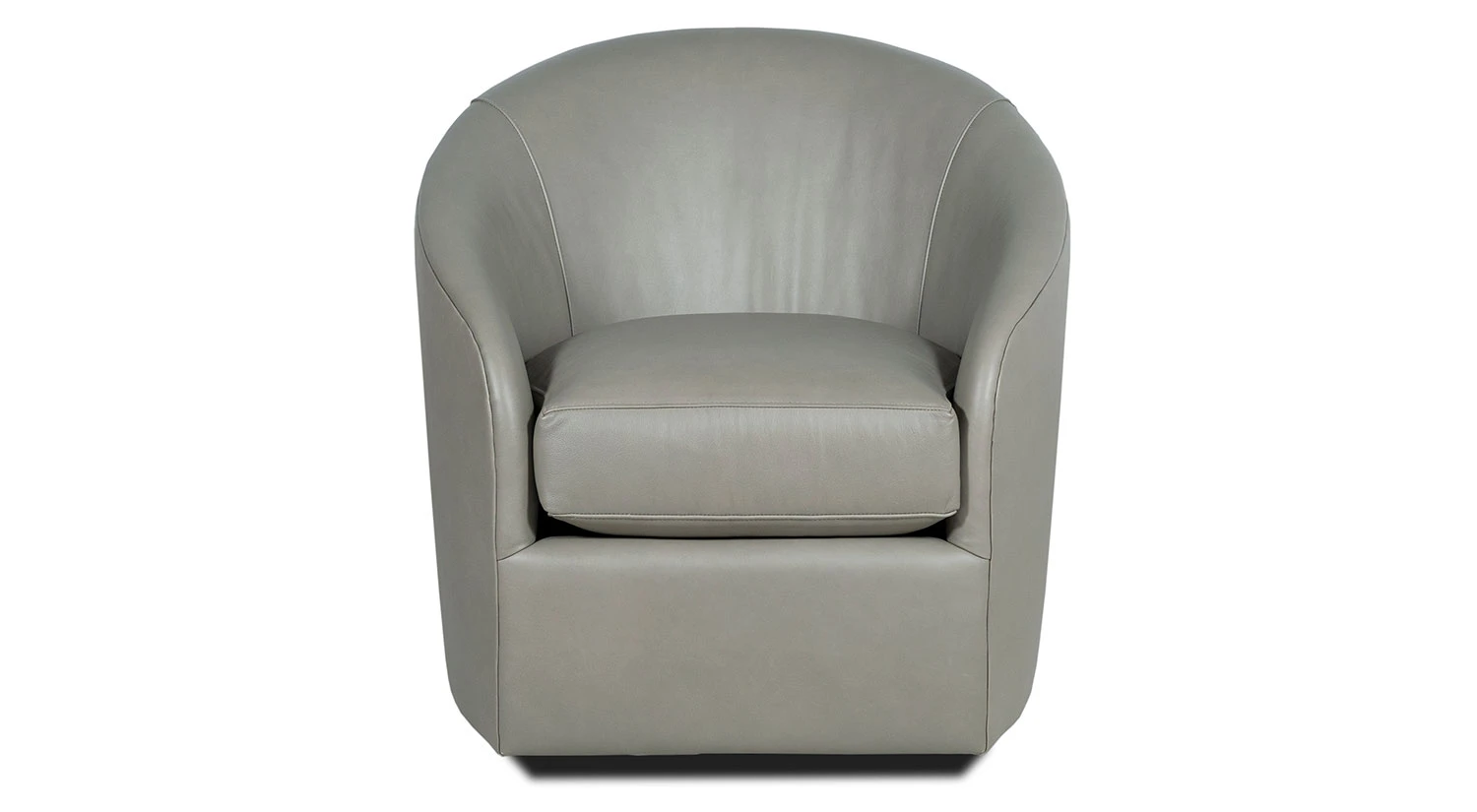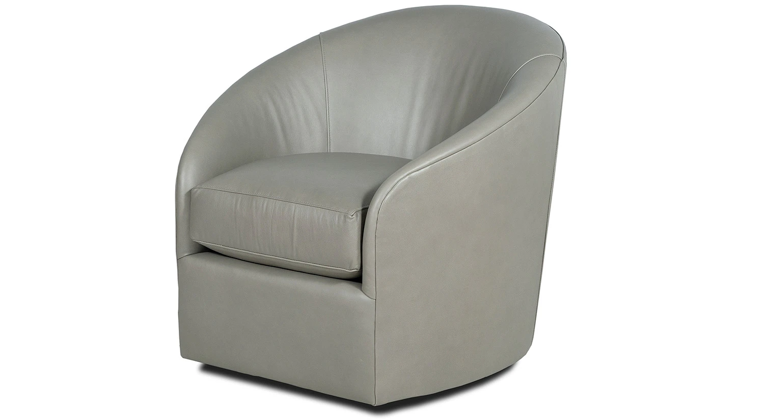 The barrel-style York Swivel Chair is a great addition to your home office or living space. It’s small in size with sloped arms and a simple design, and it comes in the leather color of your choice.